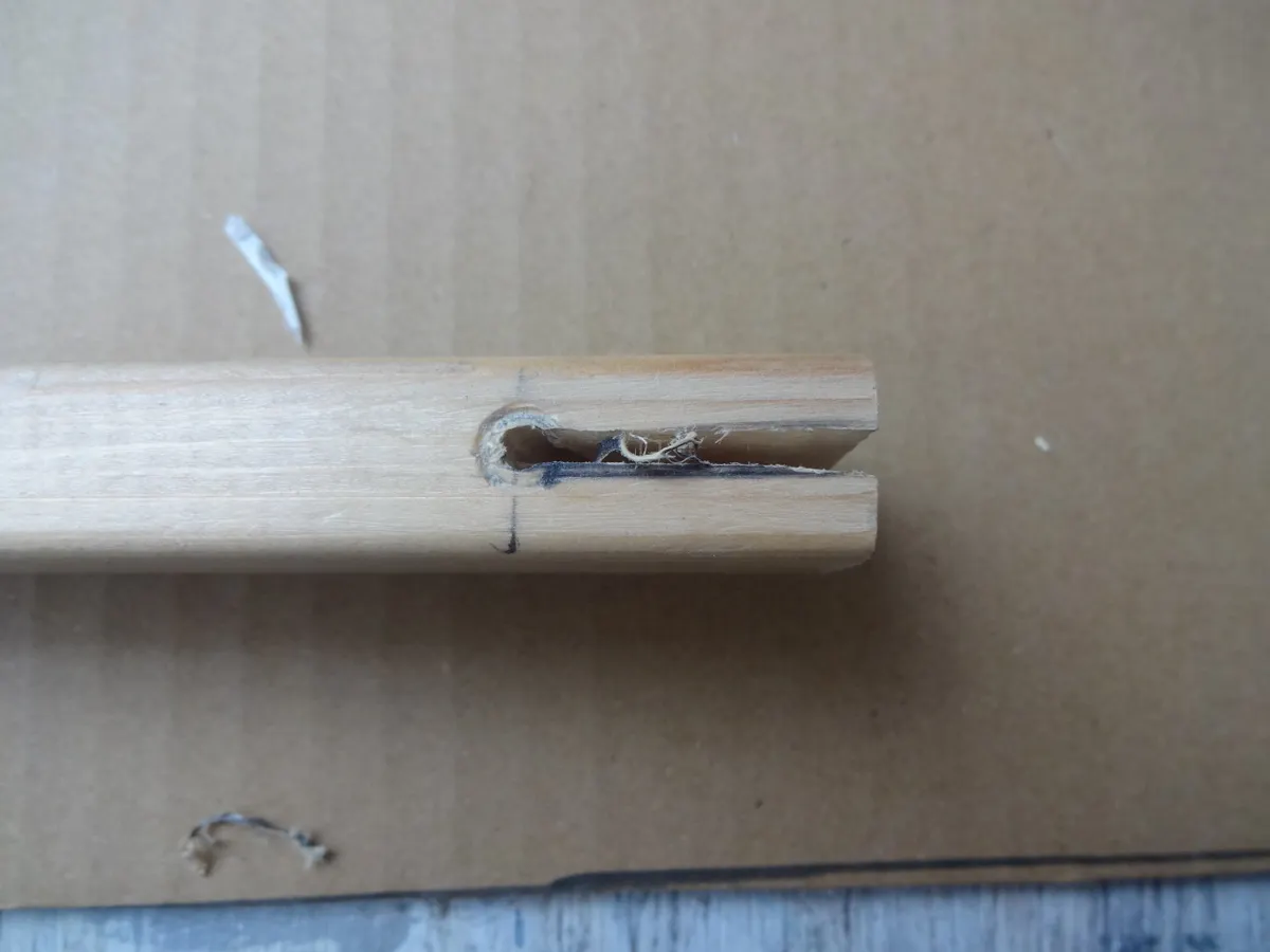 ↓ 胴体部分 30cmの末端に2mmの穴を垂直に空けます。40ミリ以上の深さまで。