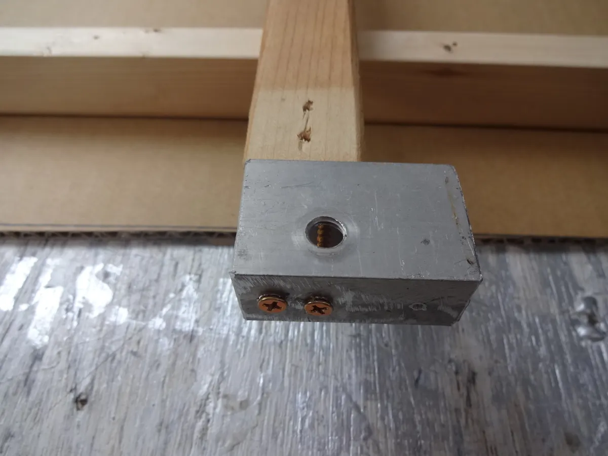 アルミ角材 1cm角で→→カインズにあり。必要な長さは 5cm。