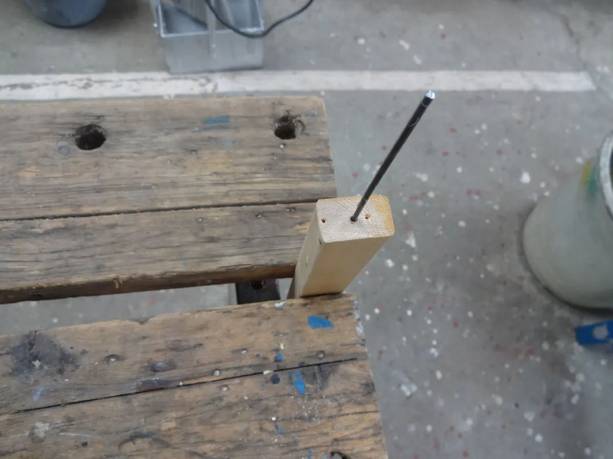 そこへ 2mm太さの鉄棒を入れカナズチで曲げない様に、抜けない様に