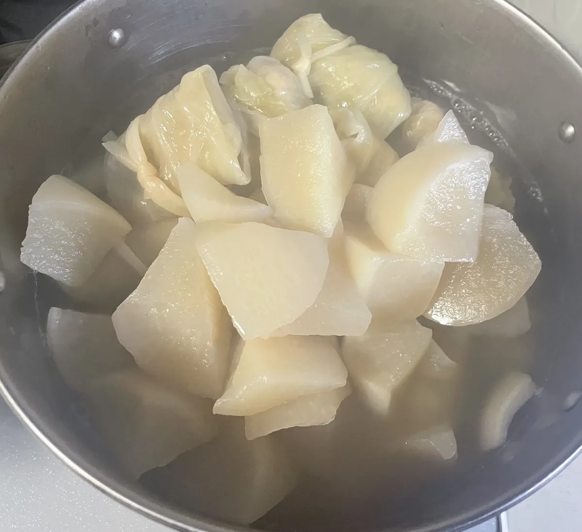 ・いつもだったら同じサイズの大根乱切りを煮物で扱う時は、お米チョイ足しの下茹でしてから調味料と合わせて他調理してたんだけど、今回はロールキャベツも圧力鍋煮でくたくたになるまで煮たかったからそこは工程飛ばしたんだけど、正直全然違い解らんくらいに味沁み沁みになってくれたよぉ〜🤣👍🤍🐖🥬🆗✨