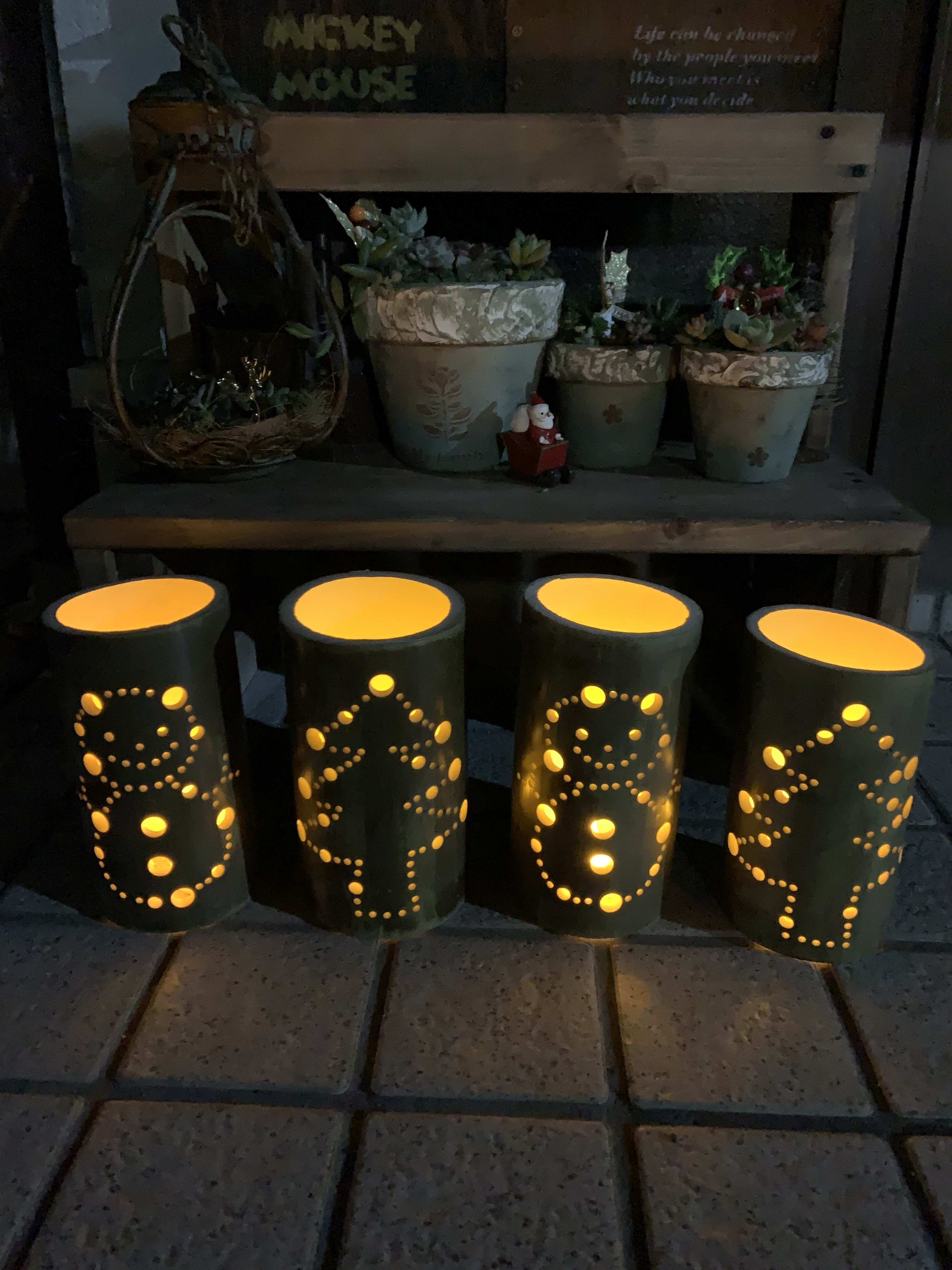 トップ > クリスマスDIY2025 > キャンペーン > 竹灯篭もクリスマス たーた 2025/12/24 15:11 竹灯篭もクリスマス ■作品内容 竹灯篭をツリー🎄と雪だるま⛄️柄にして玄関先に〜竹を少し短く切ったので灯りが綺麗にもれてます✨✨ツリーのなかも穴あけた方がよかったかな… ■工夫ポイント ※以下カインズクリスマス部門のみ入力 ■使用した商品 クリスマスデコレーション部門【2025】 クリスマスツリー部門【2025】 いいね 共有する 共有する X LINE リンクをコピー コメントする 1 件の返信 (新着順) ミュートしたユーザーの投稿です。 投稿を表示 ハッピー 2025/12/24 15:21 かわいいですね💗 たくさんつくりましたね〜😆 わたしも随分前に作りましたが、乾燥で竹が割れてしまいました💦 いいね 返信する ミュートしたユーザーの投稿です。 投稿を表示 たーた 2025/12/24 20:52 ハッピー ありがとうございます😊 頑張って作りました!軽く筋肉痛に😂 乾燥で竹割れちゃったんですね😢 いいね 返信する