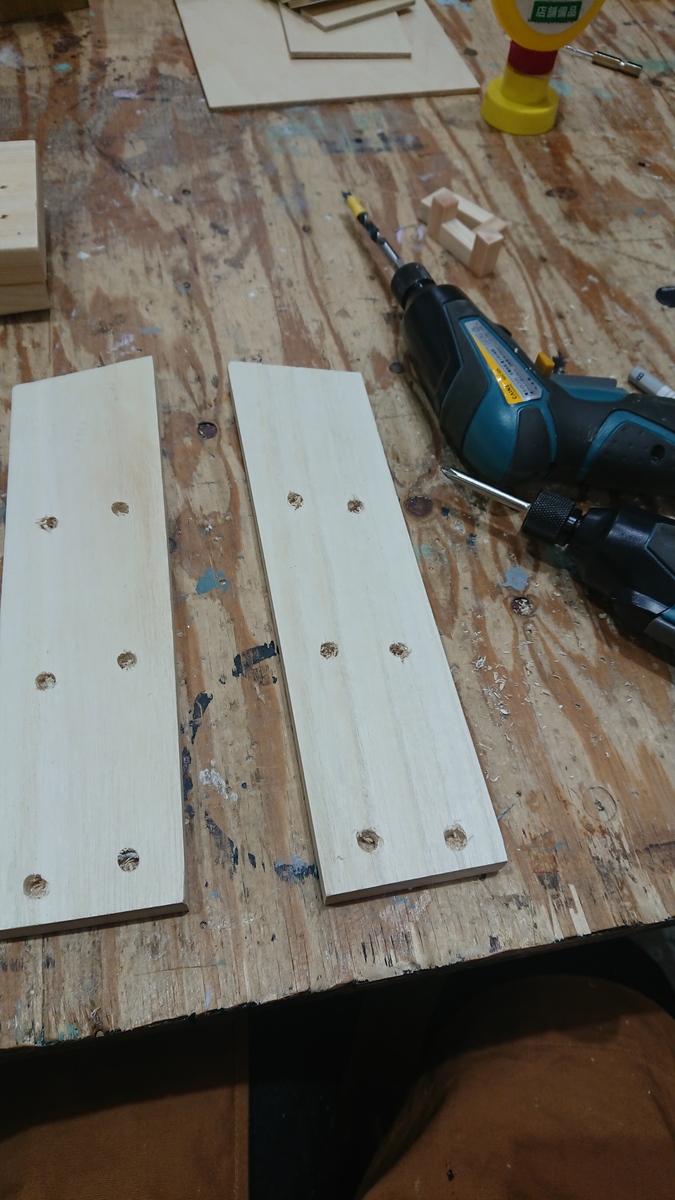横棒用の穴もドリルにスタッフさんが付けてくれた目印テープのお陰でやり易かったです