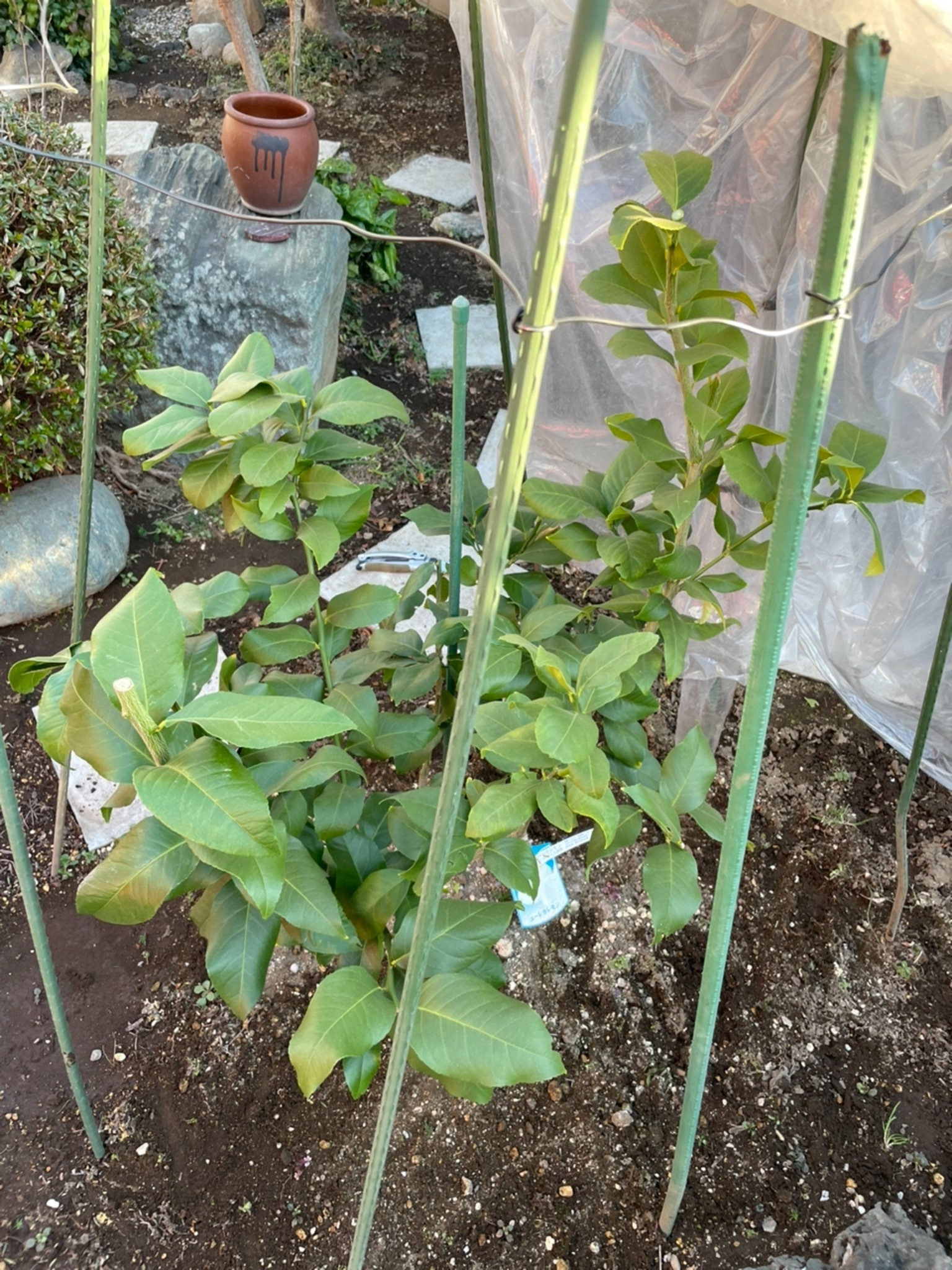 トップ > グリーン > レモン(リスボン、ユーレカ)の木のメンテ ソラ5551 2024/02/22 08:03 レモン(リスボン、ユーレカ)の木のメンテ 今年春に地植え3年目を迎えるレモンの木(リスボン、ユーレカ)のメンテナンスを。 風除けの園芸ビニールを一旦外して、軽く剪定→果実用肥料を撒く→牛フンを根元に仕込む→水遣り→園芸ビニールを巻き直します。 ※アイキャッチ画像は、ユーレカレモンです。 左から、ユーレカレモン、リスボンです。今年は花くらい目にしたいものです。 いいね 共有する 共有する X LINE リンクをコピー コメントする 3 件の返信 (新着順) ミュートしたユーザーの投稿です。 投稿を表示 sora nyanママ 2024/02/23 09:14 お庭に、路地植え〜レモン🍋 楽しみですね〜😋 わが家ではコンテナ植え…数年前にカインズで購入、瀬戸内レモンです リスボンを探したのですがなくて…羨ましいです〜🍋昨年初めての収穫…1個🫢 でも、とっても嬉しかったです〜🤗 お花も白くて可愛いですよ💕待ち遠しいですね〜😊 いいね 返信する ミュートしたユーザーの投稿です。 投稿を表示 ソラ5551 2024/02/23 10:33 sora nyanママ ありがとうございますー😀 小っちゃいのから、やっとここまできました。途中、アオムシにやられっぱなしの時もありましたが、やってみないと分からない事ばかりですね。 とりあえず、来年の収穫1号を期待してます♪ いいね 返信する ミュートしたユーザーの投稿です。 投稿を表示 sora nyanママ 2024/02/23 17:24 返信ありがとうございます〜 アオムシ…🐛❗️私も大変でした… アゲハ蝶…🦋がタマゴ🥚を産み付けに来るんですよね 1㍉くらいで白っぽい… 1年.2年.葉が食べ尽くされショック😓でした… でも、ソラ5551さんは、メンテナンスもしっかりされて、色々勉強になります〜。 いいね 返信する ミュートしたユーザーの投稿です。 投稿を表示 ソラ5551 2024/02/24 08:14 sora nyanママ 気長に!が一番なのかなー、と、そんな心境です🙆 いいね 返信する ミュートしたユーザーの投稿です。 投稿を表示 はっちゃん 2024/02/22 11:41 収穫が楽しみですね🍋 いいね 返信する ミュートしたユーザーの投稿です。 投稿を表示 ソラ5551 2024/02/22 12:42 はっちゃん 地植え3年目で、まだ未収穫ですからねー。 一先ず、花が咲いてくれないと始まらないのかなー?って気分です。 いいね 返信する ミュートしたユーザーの投稿です。 投稿を表示 toshi 2024/02/22 08:10 これなら安心ですね。手を掛けていて素晴らしいです。 いいね 返信する ミュートしたユーザーの投稿です。 投稿を表示 ソラ5551 2024/02/22 09:04 toshi ありがとうございますー😀 今年は、先ずは花を見たいです。 いいね 返信する