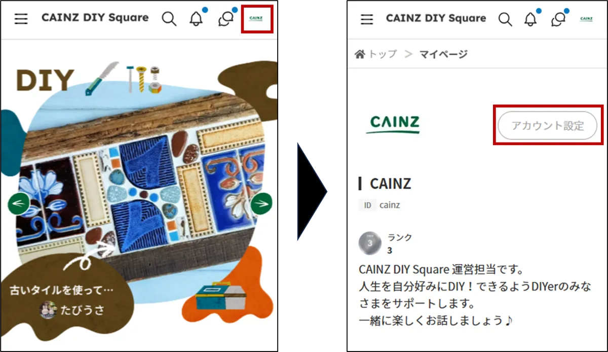 ①CAINZ DIY Squareに登録/ログイン