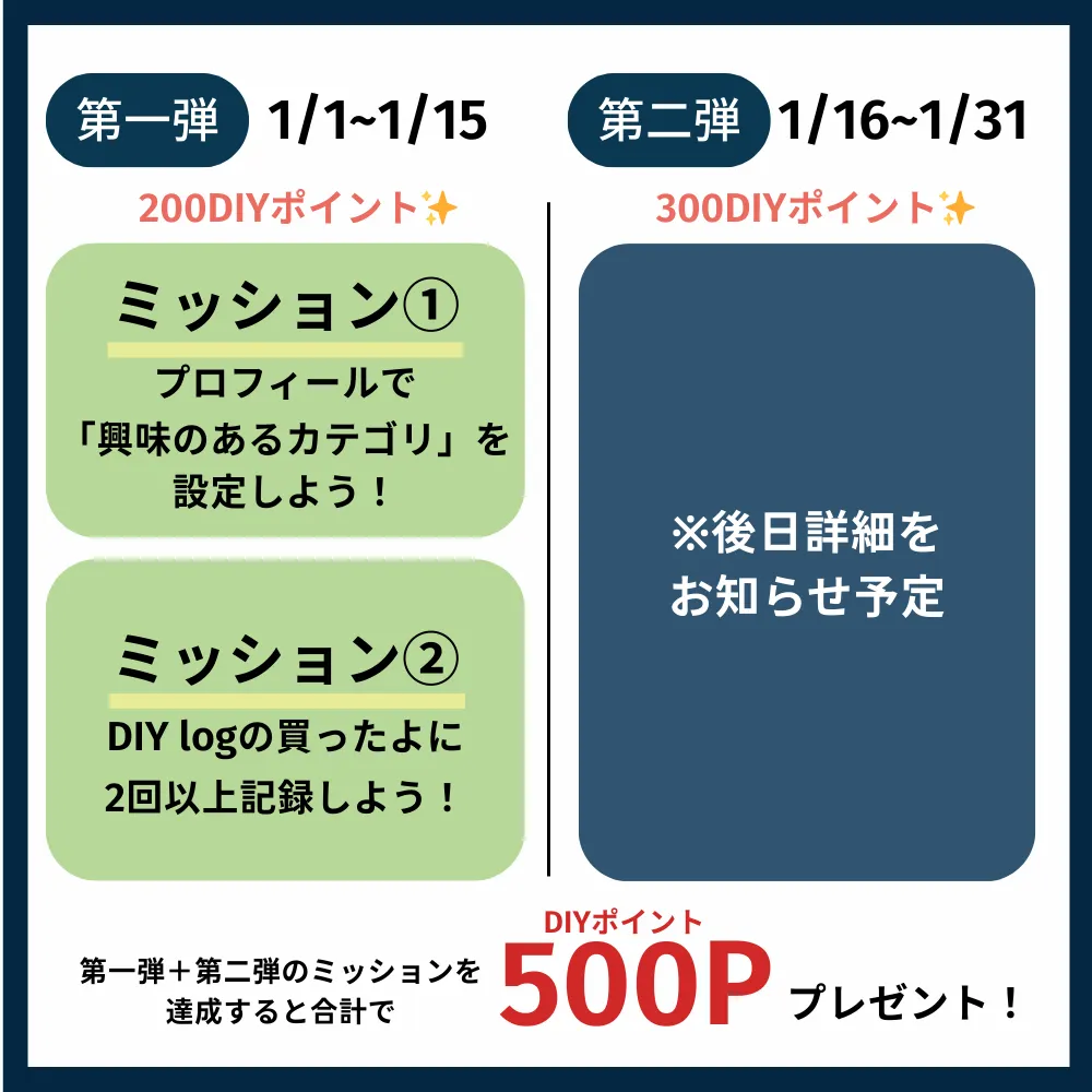 新年スタートダッシュ!ミッション達成で最大500DIYポイントゲット✨