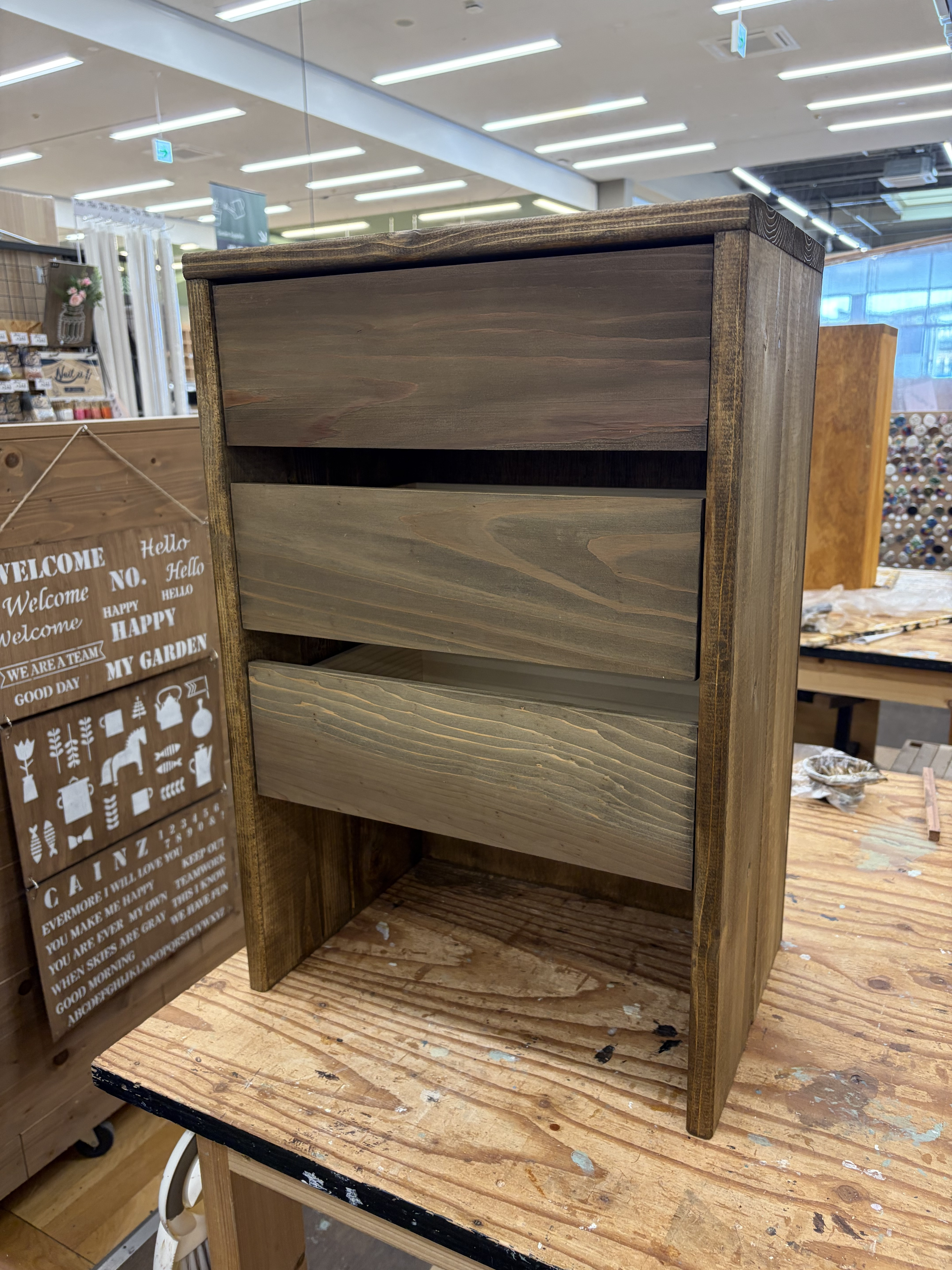 トップ > ワークショップ > 棚・収納 > キッチンシェルフ 小柚子 2026/03/06 07:48 キッチンシェルフ キッチンシェルフ 以前主人が作って来たので今回は2個目です🎶 同じウォルナットにしました😊 キッチンに並べておこうか 2階で使おうか… KUMIMOKUステインカラーズもうWSでは使えなくなるそうでこれが最後です❣️ちょっと残念ですが 新しく入る塗料も楽しみです💕 いいね 共有する 共有する X LINE リンクをコピー コメントする 1 件の返信 (新着順) ミュートしたユーザーの投稿です。 投稿を表示 べるん 2026/03/06 14:38 無くなってしまうお色のお揃いで作られて、感慨深い気持ちになりました💗 引き出しも沢山あって、とてもお洒落なキッチンシェルフですね✨ いいね 返信する ミュートしたユーザーの投稿です。 投稿を表示 小柚子 2026/03/06 20:55 べるん べるんさん コメントありがとうございます😊 最後にお揃いのカラーで作れてよかったです🎶 いいね 返信する