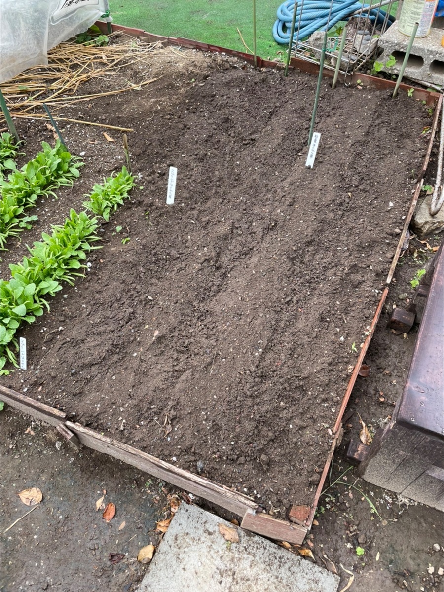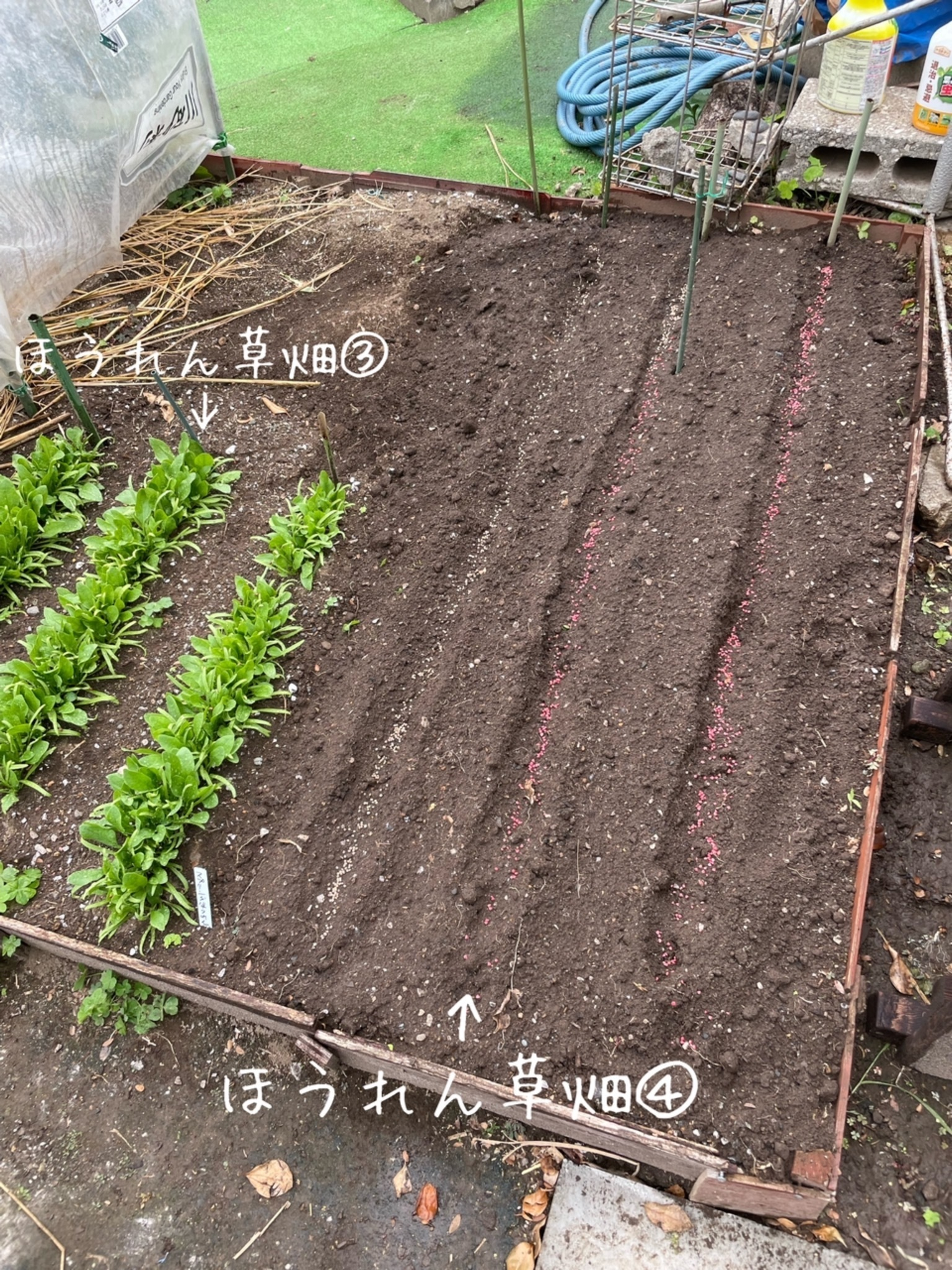 今年の菜園も、ほうれん草畑④まで来ました。先日のブロッコリー畑撤去跡をほうれん草畑④に当てました。