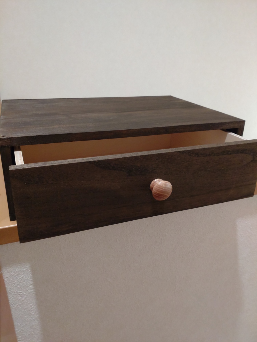トップ > DIY > インテリア > 1段引き出し ちょこっぺ 2022/11/04 18:39 1段引き出し 11月最初のW.WS午後の部は1段引き出しでした😊安定の色、ウォルナットで作りました😊 ツマミの色がやはり明るすぎる感じがしたので、家にあったちょっとアンティーク調のツマミにかえてみました😊 ここのお店は今までイベントWSしかやっていなかったそうですが、今月からレギュラーWSを始めたそうです😊同じ県内には新しいお店もOPENしたし、スケジュール調整が大変になるという、嬉しい悲鳴😅 いいね 共有する 共有する X LINE リンクをコピー コメントする 2 件の返信 (新着順) ミュートしたユーザーの投稿です。 投稿を表示 森の小さな工房 2022/11/05 01:13 とても落ち着いた色合い。 引き出しもけっこう大きそうですね。 まわりの環境が、どんどんよくなっている感じですね~。 \(^▽^)/ いいね 返信する ミュートしたユーザーの投稿です。 投稿を表示 ちょこっぺ 2022/11/05 06:31 A4がラクラク入る大きさです😊 いいね 返信する ミュートしたユーザーの投稿です。 投稿を表示 森の小さな工房 2022/11/05 08:56 ちょこっぺさん 大きさの基準って大切ですよね。 引き出しなら、A3、A4、B4、B5サイズを基準に作ることがあります。 これを考えずに、イマイチ使えない作品になった経験がありますね~。 (´;ω;`) いいね 返信する ミュートしたユーザーの投稿です。 投稿を表示 シン ひよっこ 葵 2022/11/04 21:59 取っ手を変えると、雰囲気も、変わるのですね♡♡♡ アンティーク調のつまみの引き出し、すてきです♡ 選べるWSが、たくさん増えて、良き時間がたくさん増えますように~ いいね 返信する ミュートしたユーザーの投稿です。 投稿を表示 ちょこっぺ 2022/11/05 06:33 カフェ風ショーケースを作った時もウォルナットにはツマミが明るすぎると感じたので、変えたのをすっかり忘れてました😅 いいね 返信する
