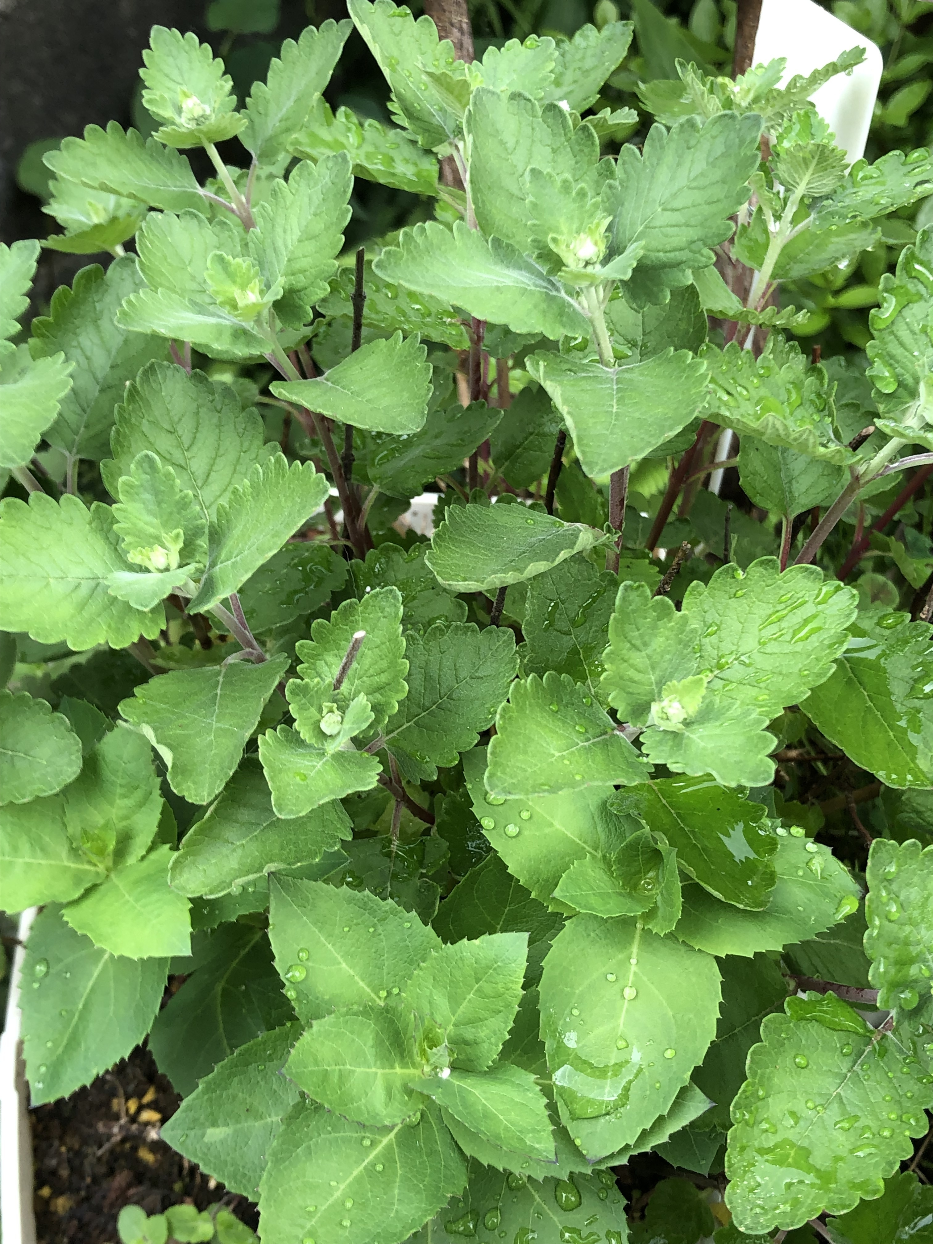 投稿を表示よぉ〜っく見ると右中央の葉っぱの中心の部分に花発見しましたよ。なんという植物の名前でしょうね…。