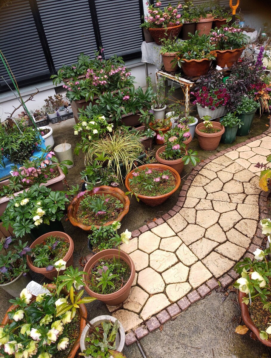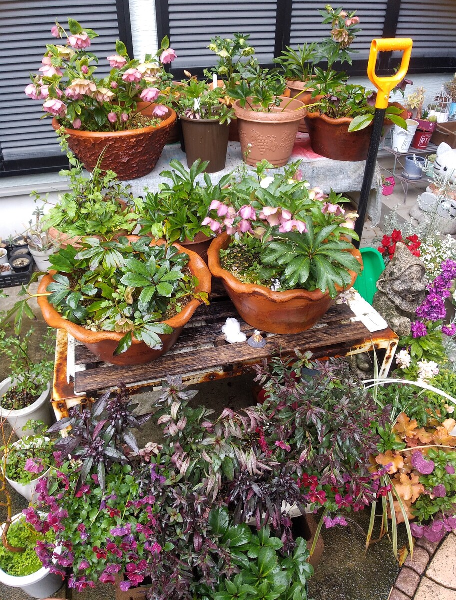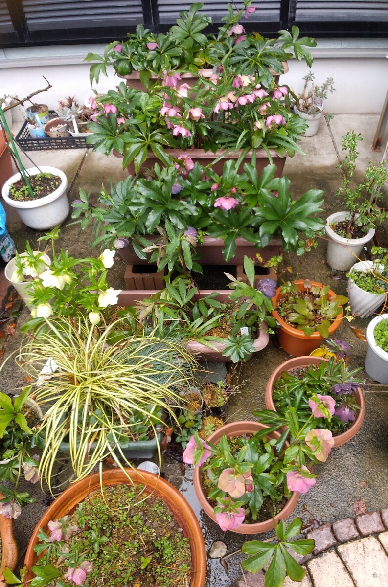 クリスマスローズもたくさん咲いていて鉢の数も😵