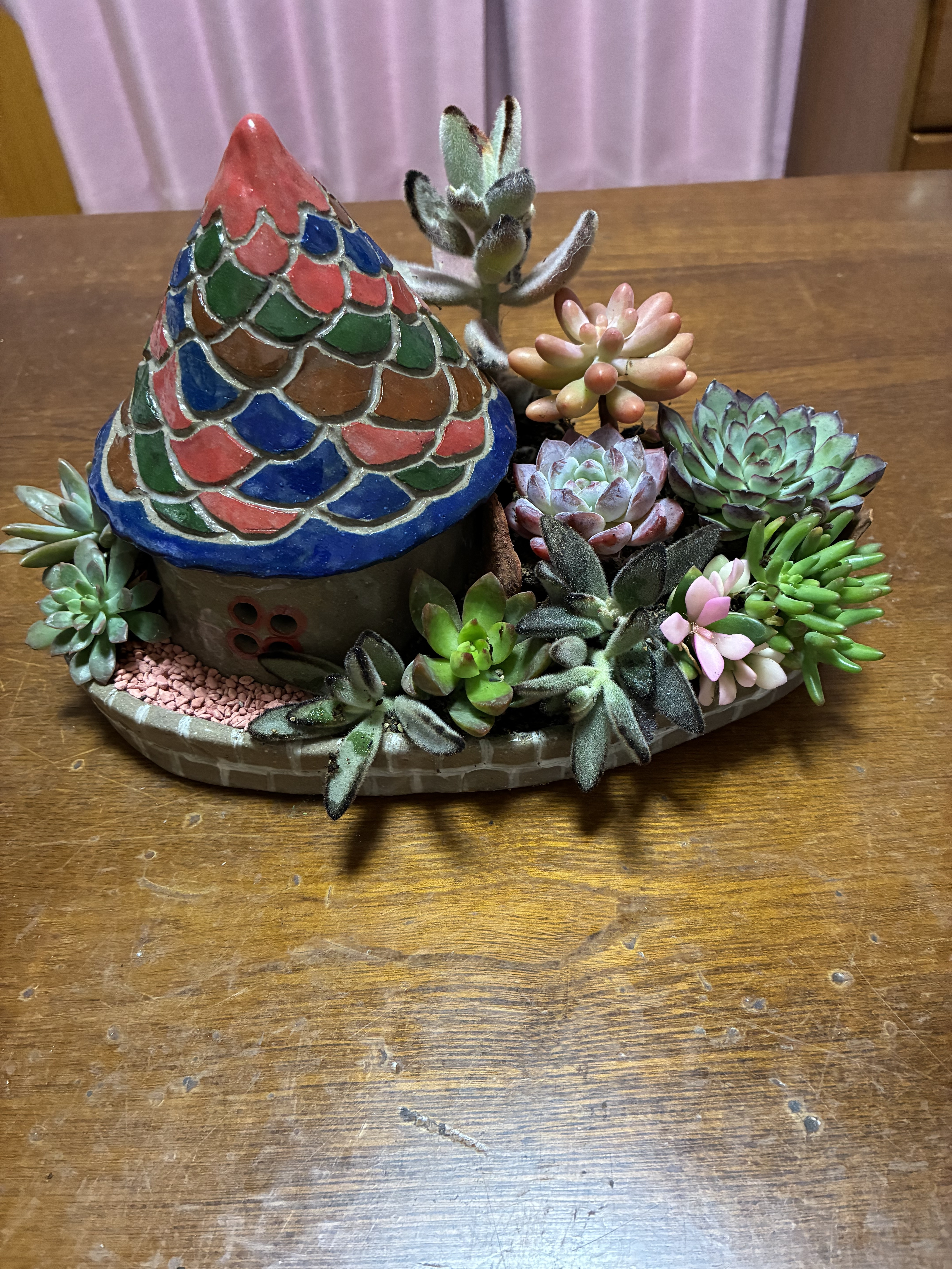 カラフルお屋根の🏠と多肉のお庭とっても可愛い〰️🫶