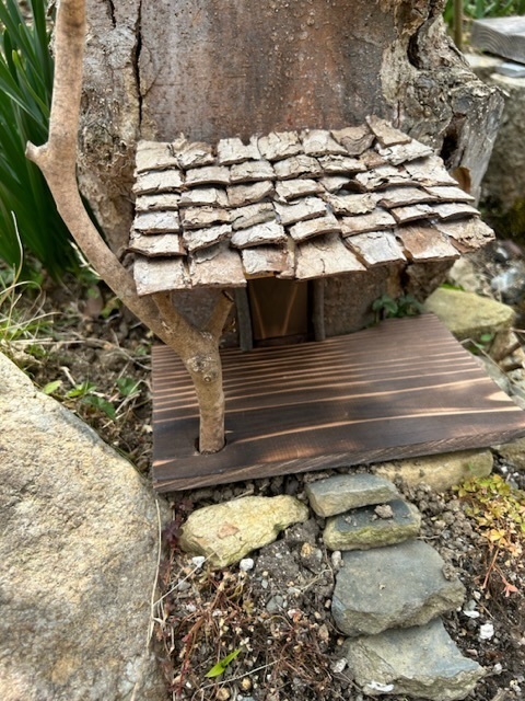 トップ > DIY > インテリア > 妖精さんお招き計画《RELOAD庇》 シダーローズ 2023/03/14 13:08 妖精さんお招き計画《RELOAD庇》 今日は玄関の庇を作ります。 以前は薄板に杉皮を葺いたんですけど、かなり傷んでたので作り直すことにしました。 今回は薄板にケヤキの樹皮を瓦状に切って貼り付けてみました。 思ったより簡単に出来ました。 今までで1番楽だった〜\( ´ω` )/ 少しでも耐久性を増すためにつや消しクリアのラッカースプレーを吹きます。 ちょっと置いてみましょうかね…。 柱代わりに立てた木の枝が上手く支えてくれていい感じ。 うんうん、上手く出来た〜(自画自賛) 小人目線人目線 いいね 共有する 共有する X LINE リンクをコピー コメントする 10 件の返信 (新着順) ミュートしたユーザーの投稿です。 投稿を表示 Tagさん 2023/03/15 07:51 うわ〜めちゃめちゃいいですねぇ~❗❗ 素敵すぎる♥♥😍 次はどうなるんだろう❓❗続きが楽しみです🤗💖 いいね 返信する ミュートしたユーザーの投稿です。 投稿を表示 シダーローズ 2023/03/15 12:28 Tagさん Tagさん、ありがとうございます。 昨年は窓のところで行き詰まったんですよね〜。 策は講じてるので今回は大丈夫だと思います。 いいね 返信する ミュートしたユーザーの投稿です。 投稿を表示 コウモリ 2023/03/15 05:40 シダーローズさん。 うぅ〰️🎶 めっちゃいいですねぇ〰️✨🥳✨🎉✨ 庇の味が堪らん👍✨ 小人(昆虫)と巨人?目線が面白いデス🤣💕🎶🎶 窓ですね🪟☝️✨ 正念場💨 期待しておりますぞっ✨🌈✨✨🚀 いいね 返信する ミュートしたユーザーの投稿です。 投稿を表示 シダーローズ 2023/03/15 06:49 コウモリさんおはようございます。 そうです、窓さえ何とかなればほぼ完成に近いです。 策は練っているので、さて、それが思いどおりに行くかどうかです。 いいね 返信する ミュートしたユーザーの投稿です。 投稿を表示 コウモリ 2023/03/15 08:43 シダーローズさん。 期待度120%💨💨 ガンバッテ〰️📣💕 いいね 返信する ミュートしたユーザーの投稿です。 投稿を表示 ハナミズキ 2023/03/14 22:44 こんばんは☺️ 小人目線がとっても楽しくて素敵😆✨✨ 私もスモールライトで小さくなって入りたいです🤣 素敵なお屋根ですね😍 いいね 返信する ミュートしたユーザーの投稿です。 投稿を表示 シダーローズ 2023/03/14 22:54 庭に住む妖精や虫たちからはきっとこんなふうに見えてるだろうな、と。 「こいつはなんだ?」って恐る恐る近づいてドアを開けてほしいですね。近日オープンののぼりでも立てようかしら。 いいね 返信する ミュートしたユーザーの投稿です。 投稿を表示 Toko 2023/03/14 19:31 久々の妖精さんのお家。リフォームされたのですね!素敵な屋根です。 これからどんなふうに変化して行くのか楽しみです😊 妖精さんになってこちらにお引越しさせてもらいたいですね😆 いいね 返信する ミュートしたユーザーの投稿です。 投稿を表示 シダーローズ 2023/03/14 20:35 そうなんですよ。約1年ぶりに再始動です。 昨年は窓を作る所で思い通りにいかなくて中断したけど、今度は大丈夫です。 完成させます。 いいね 返信する ミュートしたユーザーの投稿です。 投稿を表示 ふーふーちゃん 2023/03/14 18:43 ナイス💕ワクワクしてきます😄 いいね 返信する ミュートしたユーザーの投稿です。 投稿を表示 シダーローズ 2023/03/14 20:38 昨年もここまではいけたんですよ。 次回は中断の原因になった窓です。 いいね 返信する ミュートしたユーザーの投稿です。 投稿を表示 みかん 2023/03/14 16:59 松ぼっくりのような屋根素敵ですね。😍💕 小人目線 、楽しいですね~。☺️🎶 いいね 返信する ミュートしたユーザーの投稿です。 投稿を表示 シダーローズ 2023/03/14 17:39 このドアから入れるサイズの妖精ならこんなもん?って思って撮りました。 視点を帰ると面白いですよねー。 いいね 返信する ミュートしたユーザーの投稿です。 投稿を表示 チコリ 2023/03/14 15:29 柱代わりの木の枝がほんといい感じ❣️ 人目線でもちゃんとドア見えますね🚪 妖精達のお家争奪戦が始まる予感🧚♀️vs🧚 vs🧚♂️ いいね 返信する ミュートしたユーザーの投稿です。 投稿を表示 シダーローズ 2023/03/14 17:36 庇支えてる柱は椿の枝なんですけどあつらえたみたいにピッタリで驚きました。 自分で作ってるくせに次はどうなるんだろう?ってワクワクしてます。 いいね 返信する ミュートしたユーザーの投稿です。 投稿を表示 きょろっち 2023/03/14 15:09 屋根のけやきの樹皮がいいですねぇ☺️ 玄関の石の階段もあがるところの石も。昔、祖母のうちの縁側の下にこういう石がありました😊 いいね 返信する ミュートしたユーザーの投稿です。 投稿を表示 シダーローズ 2023/03/14 15:22 きょろっちさん、ありがとうございます。 縁側の沓脱ぎ石、私の祖父母の家にもありましたよ〜。 今から考えたら重機も入れないのによくあそこに設置できたなぁって思います。 いいね 返信する ミュートしたユーザー
