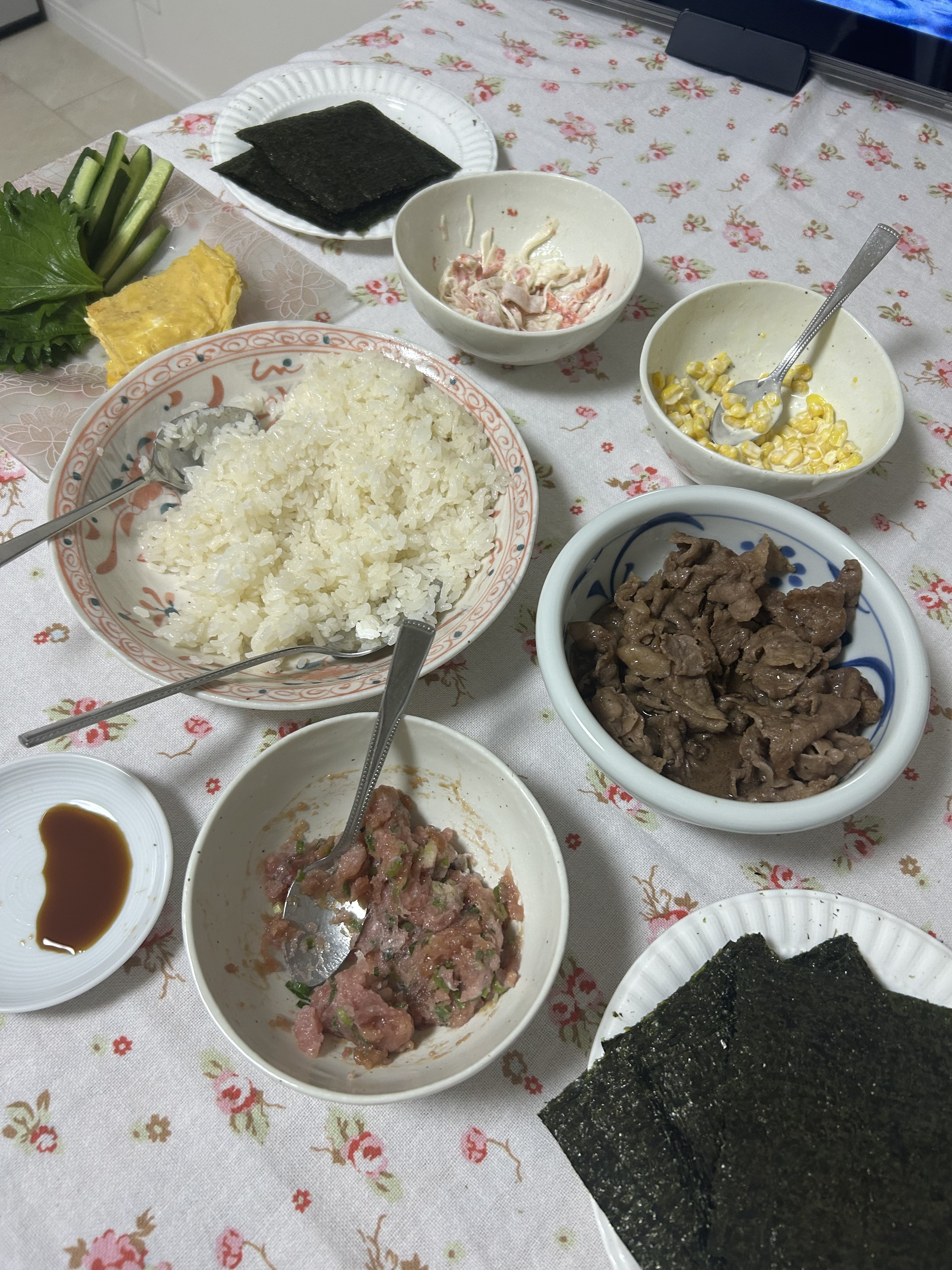 トップ > その他 > 昨日の夕飯 手巻き寿司 mimin 2023/11/13 16:47 昨日の夕飯 手巻き寿司 食べ始めてから写真を撮ったので、少し汚くてごめんなさい🙇♀️ いいね 共有する 共有する X LINE リンクをコピー コメントする 2 件の返信 (新着順) ミュートしたユーザーの投稿です。 投稿を表示 ちーず 2023/11/13 20:07 手巻き寿司にお肉✨ やった事なかったけど美味しそう😋 いいね 返信する ミュートしたユーザーの投稿です。 投稿を表示 mimin 2023/11/13 21:43 ちーず こんばんは😊 あれ、逆に手巻きにお肉は珍しいのかな😅 是非! いいね 返信する ミュートしたユーザーの投稿です。 投稿を表示 suimo 2023/11/13 18:02 美味しそうです😋お肉?ありますか。 食べたくなりました🍣 いいね 返信する ミュートしたユーザーの投稿です。 投稿を表示 mimin 2023/11/13 18:28 suimo 美味しかったですよー😊 牛肉の醤油炒めが海苔の上にあります😅 suimoさんだったらどんな食材を手巻きに使うか気になりますねー😀 いいね 返信する ミュートしたユーザーの投稿です。 投稿を表示 suimo 2023/11/13 18:56 mimin 普通ですよ😆 お刺身と厚焼き玉子とかですね。明太子、ツナマヨやアボカドもいいですよね。肉はやったことがないので美味しそうです。韓国の海苔巻キンパみたいですね。 いいね 返信する ミュートしたユーザーの投稿です。 投稿を表示 mimin 2023/11/13 19:46 suimo 明太子は今までやったことはないですけど、絶対合いますね😊 我が家は肉必須なので、、😆 suimoさんも是非👍 いいね 返信する ミュートしたユーザーの投稿です。 投稿を表示 suimo 2023/11/13 20:42 mimin やってみます😋この肉ならおにぎりも美味しそうですね。 いいね 返信する
