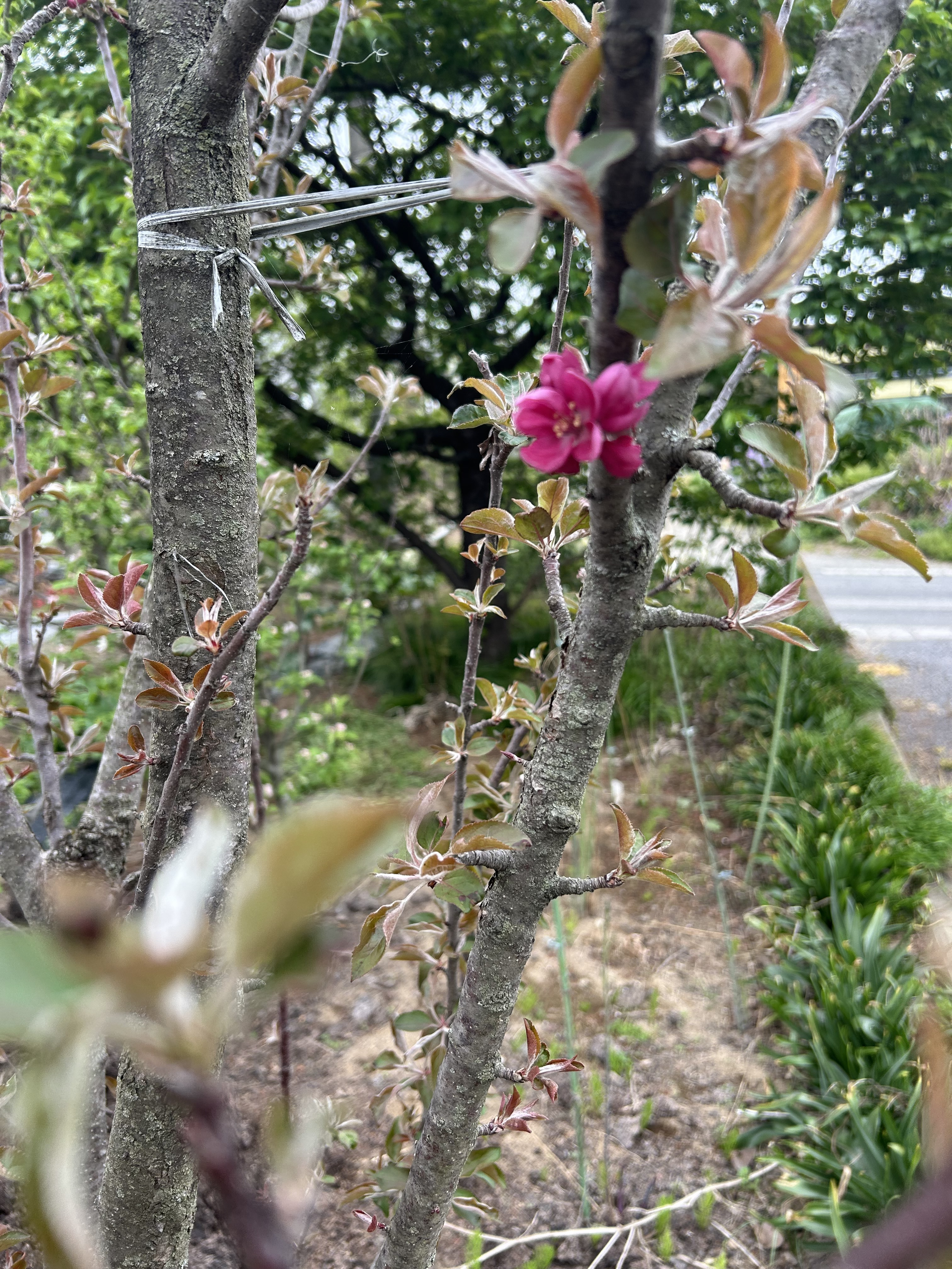 こんなに鮮やかなピンク色の花を咲かせるりんごの木もあるんですね❣️