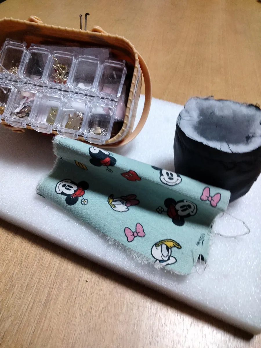 裏地はディズニー柄の布チョイス…可愛いパーツも加えました🩷