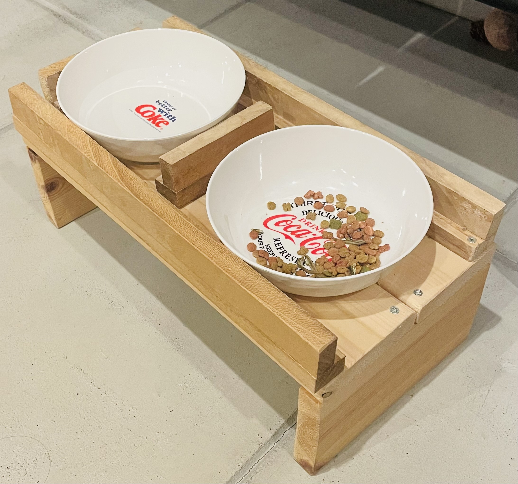 トップ > にゃん祭りDIY2026 > キャンペーン > 猫ゴハン置き場DIY runa 2026/02/08 18:15 猫ゴハン置き場DIY ■作品内容 猫用のゴハン置き場が市販品で気に入る物が無かったので、DIYにて作製。 ■作品のこだわりポイント お皿の大きさに合わせてジグソーで丸穴を開けて、そこにピッタリに皿が入るようにしました。 しばらく使っていると、ネコが手で水の入った皿をチョンチョン動かしてたびたびこぼしてしまったので💦 なくなく周りを木枠で固定しました。 猫は遊べなくなり残念そうですが…😅 インテリア部門【にゃん祭りDIY2026】 いいね 共有する 共有する X LINE リンクをコピー コメントする 3 件の返信 (新着順) ミュートしたユーザーの投稿です。 投稿を表示 チコリ 2026/02/10 01:47 我が家はまだ5ヶ月なので床に直置きしてますが、成長に合わせて高くした方がいいんですね! 作り方参考にさせていただきます☺️ いいね 返信する ミュートしたユーザーの投稿です。 投稿を表示 DIY野良猫 2026/02/09 05:24 素敵ですね~😽 我が家のにゃんもお水の入ったお皿をチョンチョンやります😹 びしょびしょに〜🙀 手作りいいですね~😽 高さもぴったりにできますね〜😸 いいね 返信する ミュートしたユーザーの投稿です。 投稿を表示 べるん 2026/02/08 21:42 猫ちゃんにピッタリな高さに作られていて、猫ちゃんも嬉しそうですね😻 お手々で チョンチョン🎶 器用ですね🤩 いいね 返信する