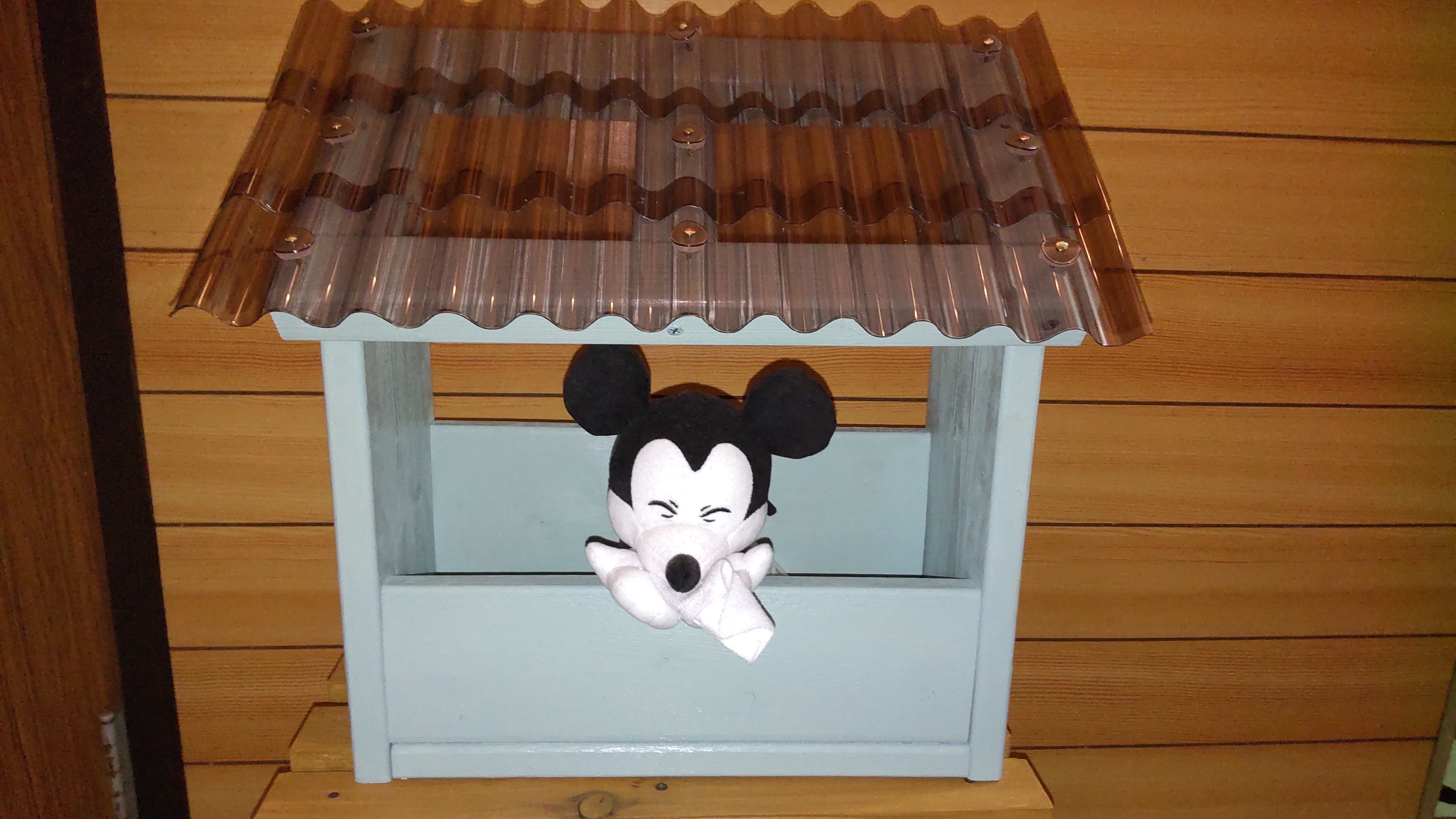 斜めカットからスタートでえーノコギリ😱と思いましたが😭途中、色々とぷちトラブルありましたが、何とか完成しました😀とりあえず、お花は、まだないので、花粉症がそろそな私なので、このミッキーを入れて写真を撮りました😁