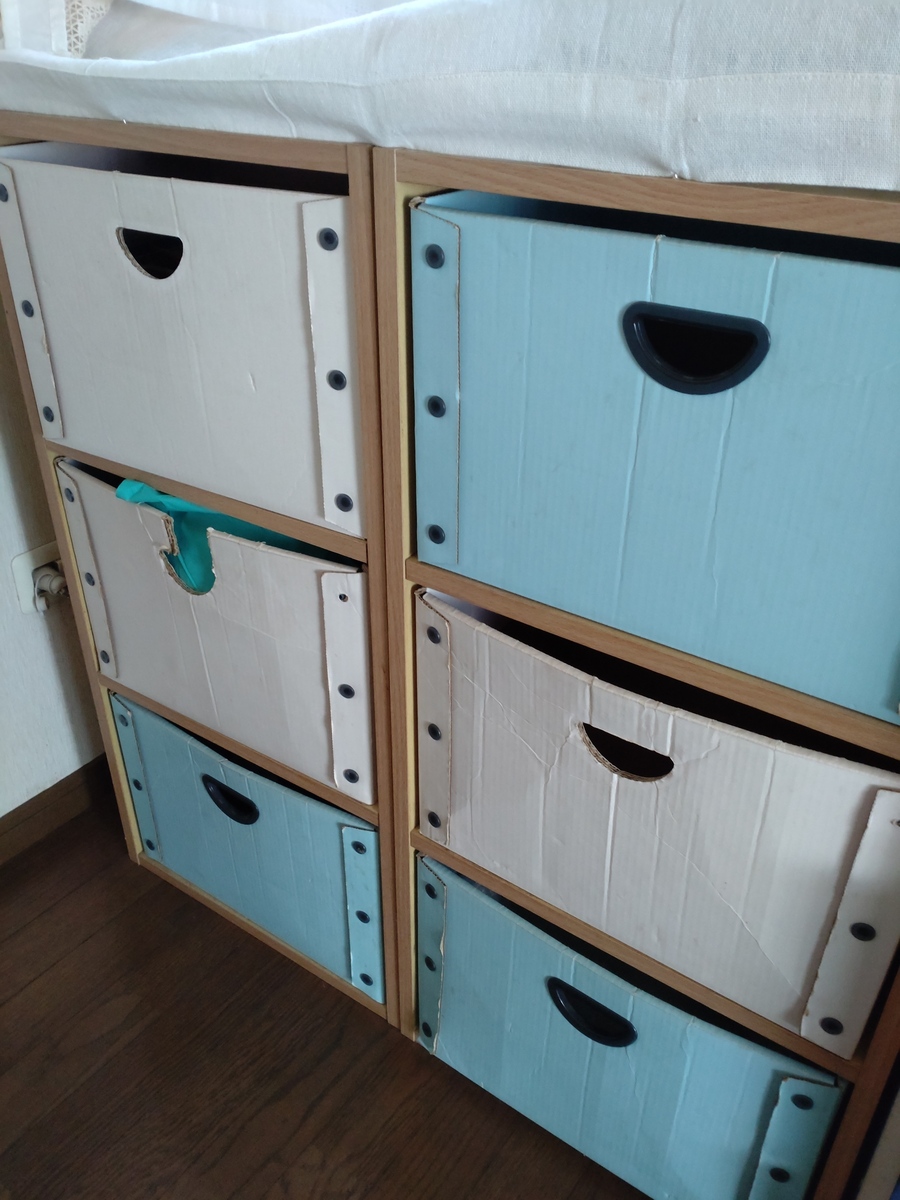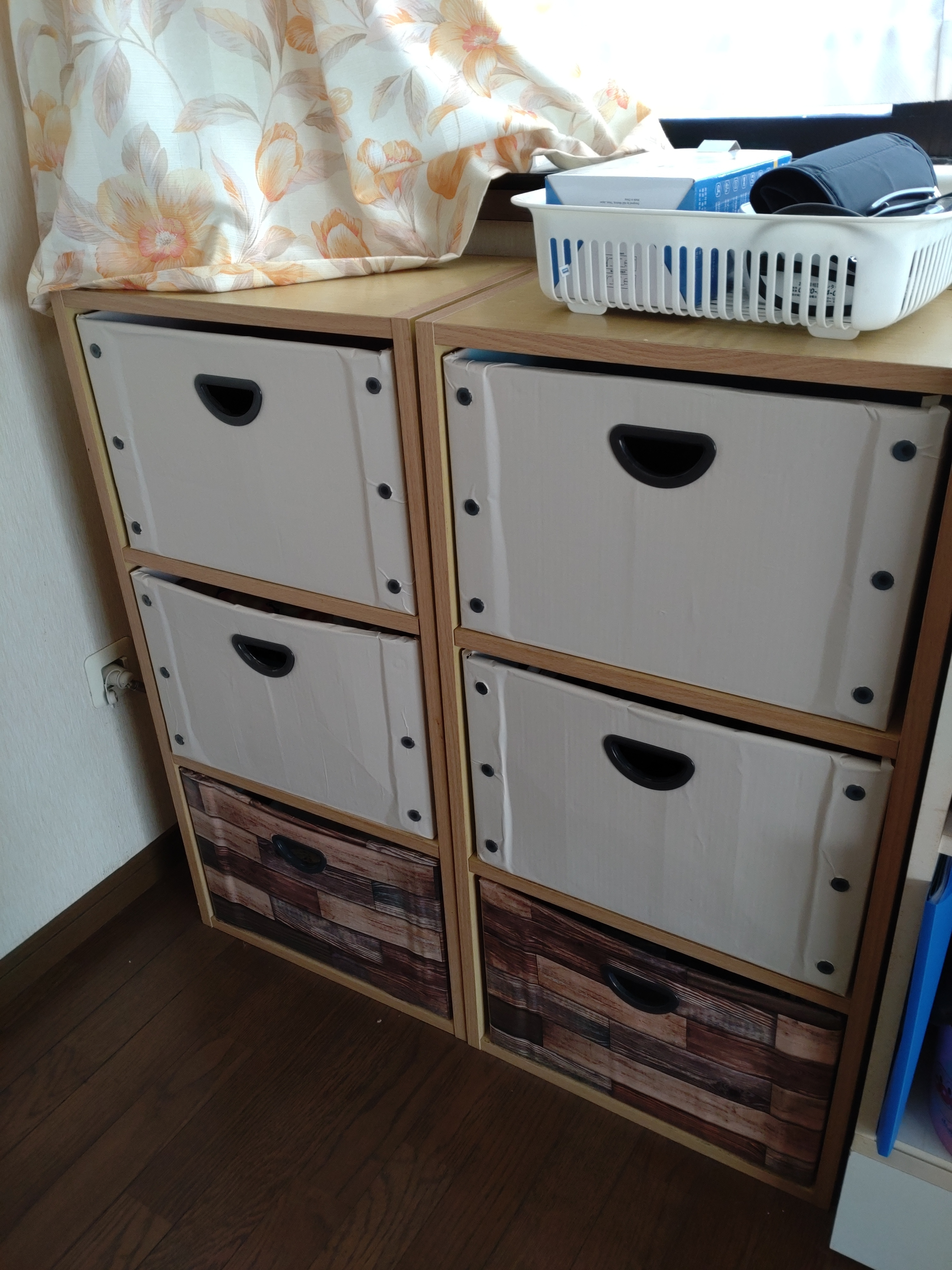 カラーボックスサイズのボックスにリメイクシート貼りました。