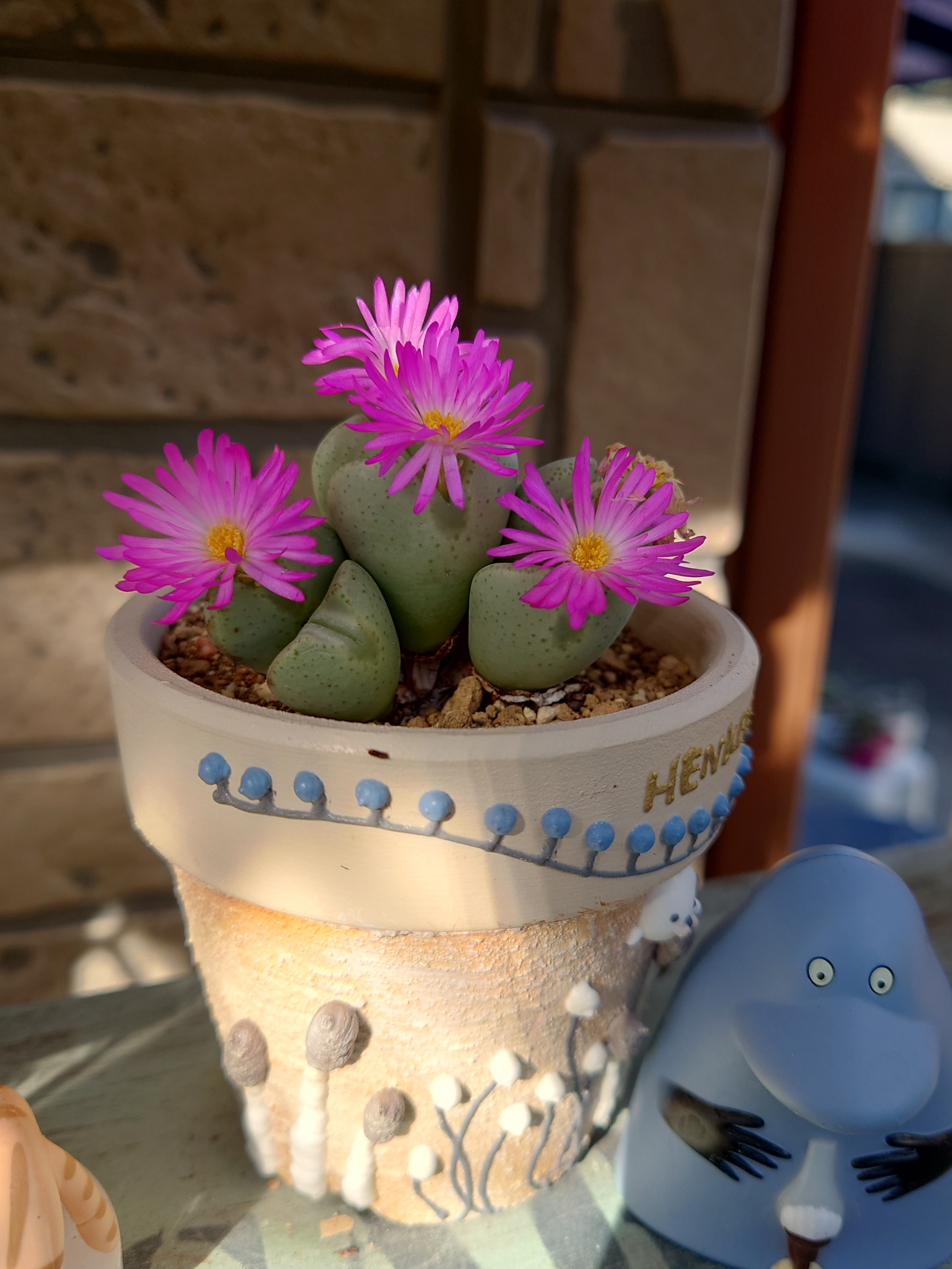鉢のデザインと多肉のフォルムと花の鮮やかさに、魅せられて引き込まれてしまいそうです❣️