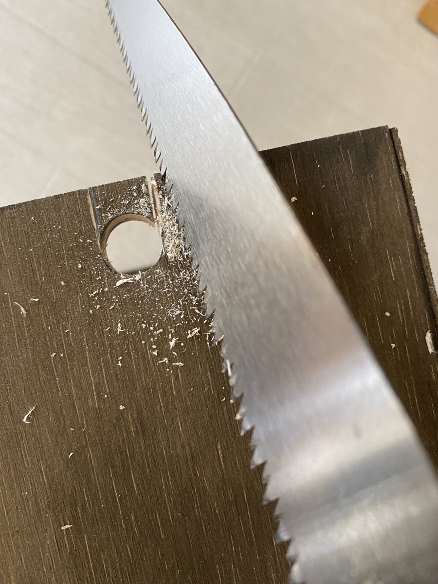 もう!差し込まないで上から棒を入れれば良くね?と、ギーコギーコと穴を上から切りました