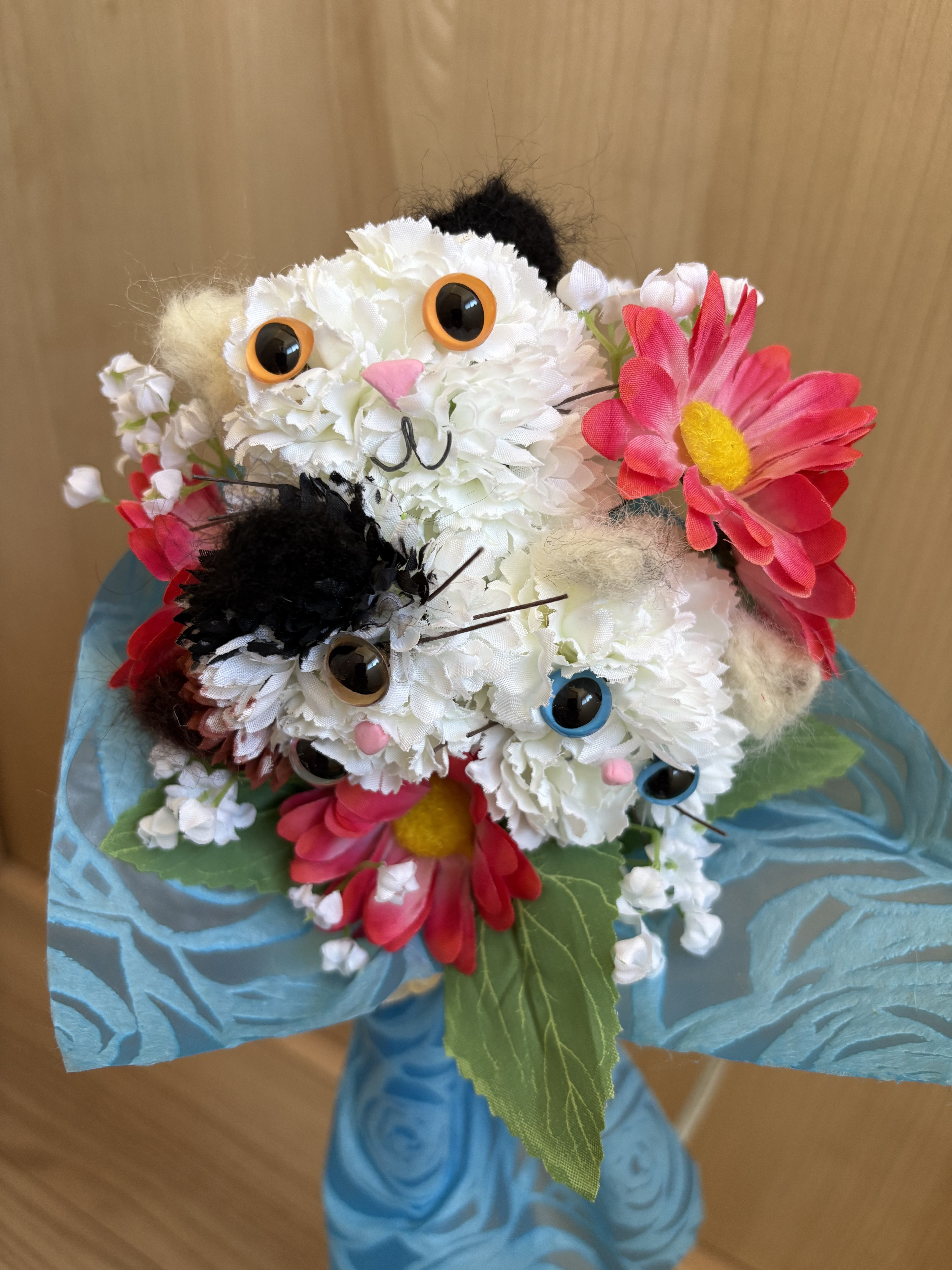 お目め、くりっとしていて、お耳ふわふわ、親子ねこちゃんのブーケ🌸💐お家に飾っていてもいいし、プレゼント🎁にしても喜ばれますね💖