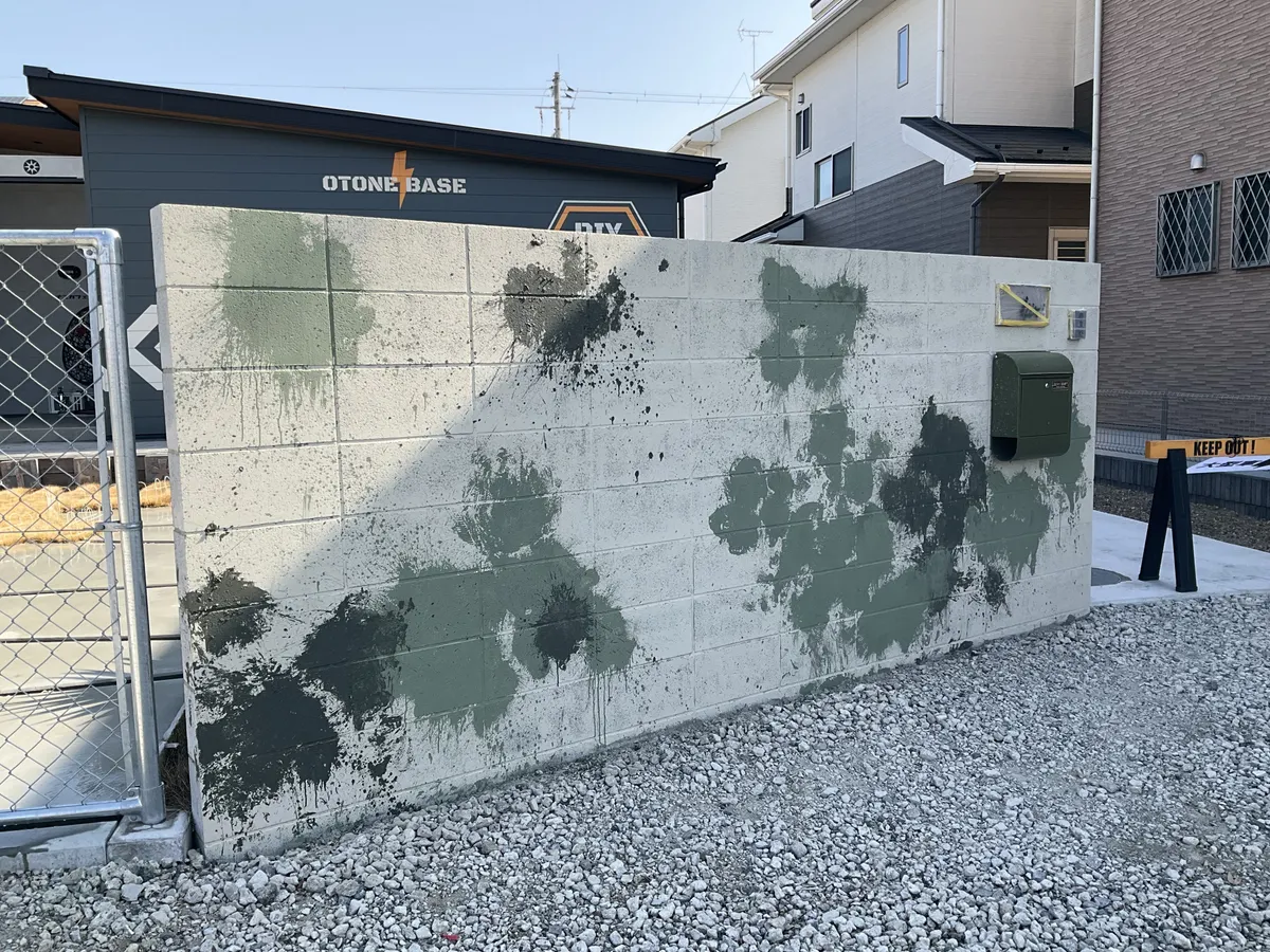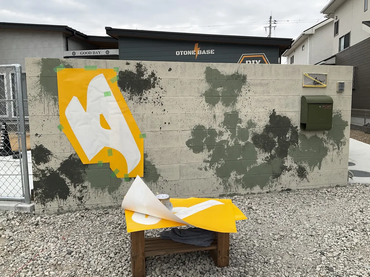 大きいから全文字のシートを一度に貼って、一気にステンシルでけへんから💦