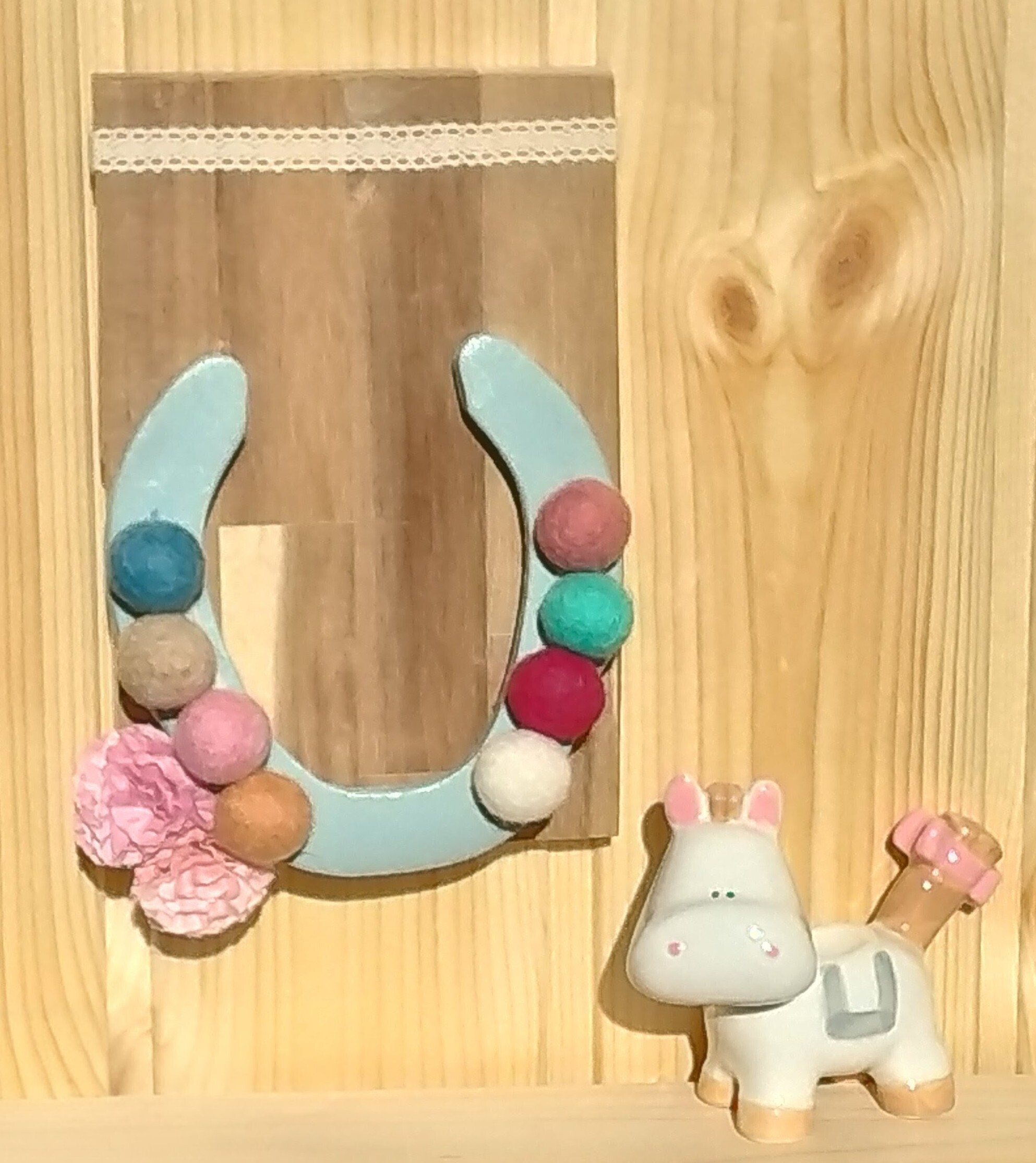 トップ > お正月DIY > キャンペーン > 蹄鉄 くろさき 2026/01/04 17:19 蹄鉄 ■作品内容 蹄鉄を持っていたので汚れを落とし塗装しました ■工夫ポイント ネイルホールに沿ってフェルトボールを留めました🎵 板に取り付け壁に飾れます 蹄鉄は重いので裏からビスどめしました😊 お正月飾り部門 干支部門 蹄鉄 フェルトボール 壁飾り いいね 共有する 共有する X LINE リンクをコピー コメントする 2 件の返信 (新着順) ミュートしたユーザーの投稿です。 投稿を表示 チコリ 2026/01/05 01:29 蹄鉄、縁起物ですね! 優しい色合いで可愛いです💕 いいね 返信する ミュートしたユーザーの投稿です。 投稿を表示 くろさき 2026/01/05 08:29 チコリ 上向きの馬蹄で幸運をたくさん受け止めましょう💖 色使いとフェルトボールで鉄も優しく見えますね ありがとうございます😊 いいね 返信する ミュートしたユーザーの投稿です。 投稿を表示 nurseうさぎ 2026/01/04 19:38 可愛い❤️アイデアも凄いです✨ いいね 返信する ミュートしたユーザーの投稿です。 投稿を表示 くろさき 2026/01/04 20:24 nurseうさぎ 材料は家にあった物を合わせたのでどうなるかなと思いました。なんとなくまとまったかしら😊ありがとうございます💖 いいね 返信する