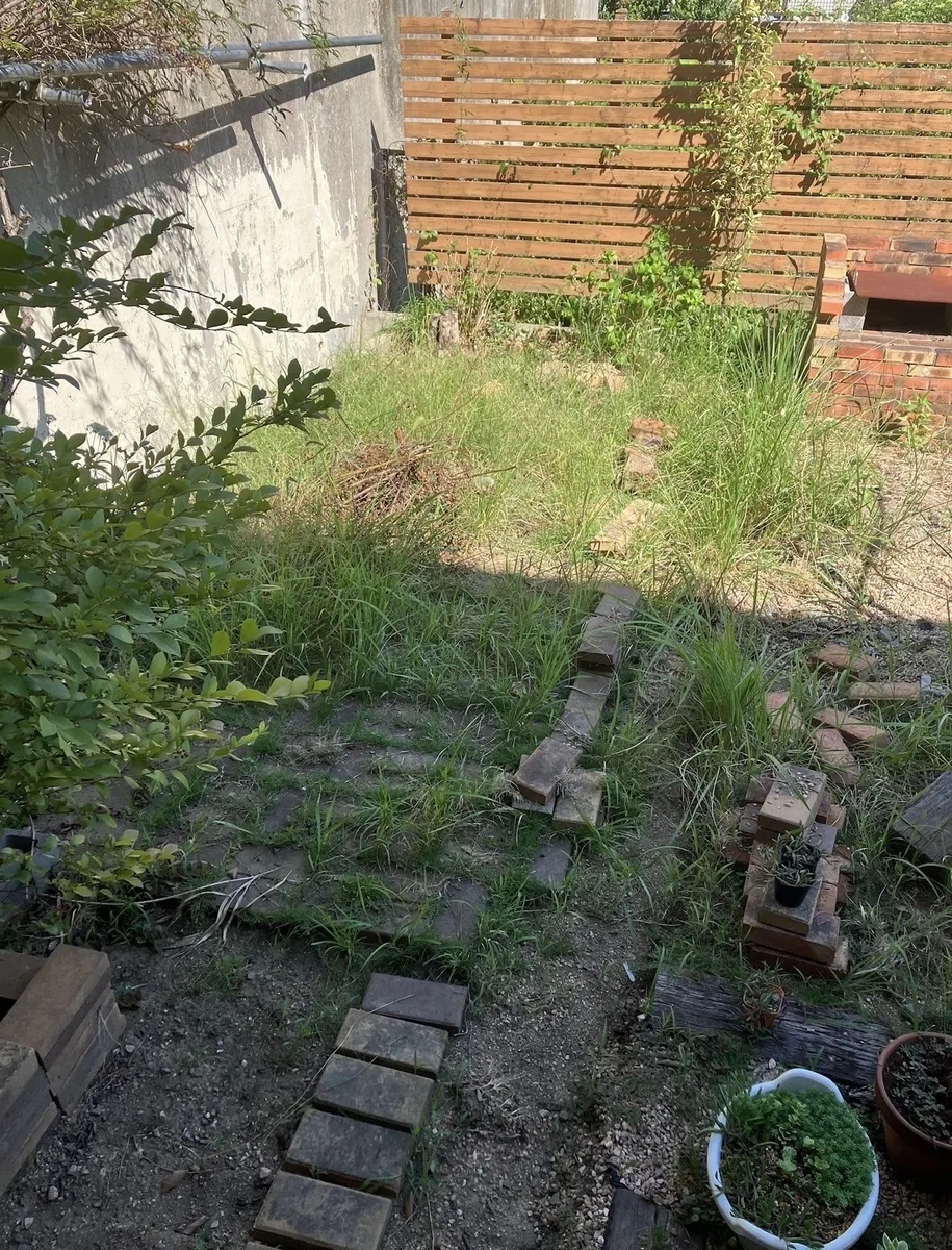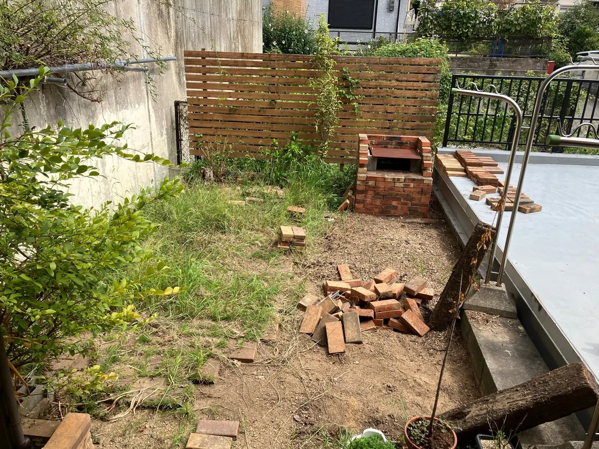 元のお庭も枕木、レンガ、芝生で綺麗なお庭だったんでしょうね✨