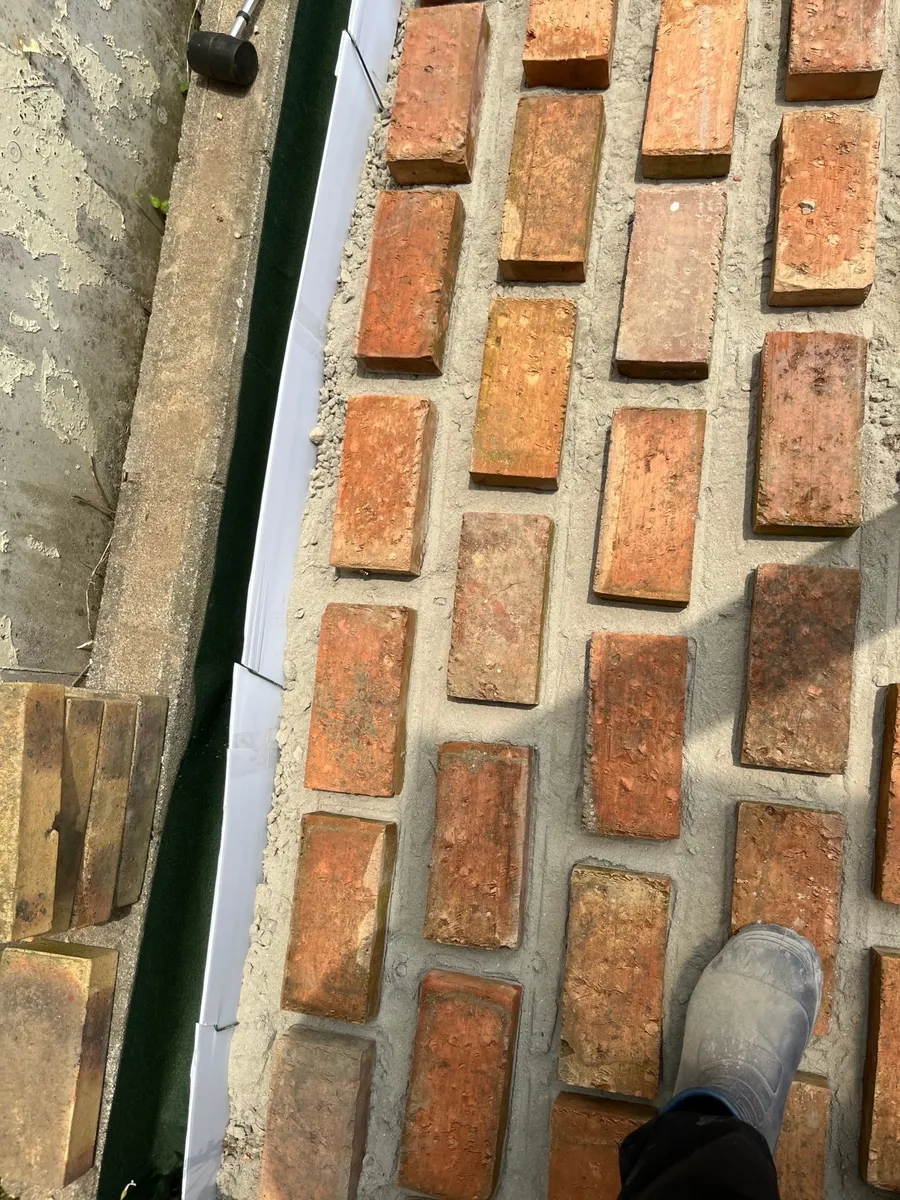 レンガを掘り出し 土を平に均してからのレンガですから 気の遠くなる作業でしたね💦