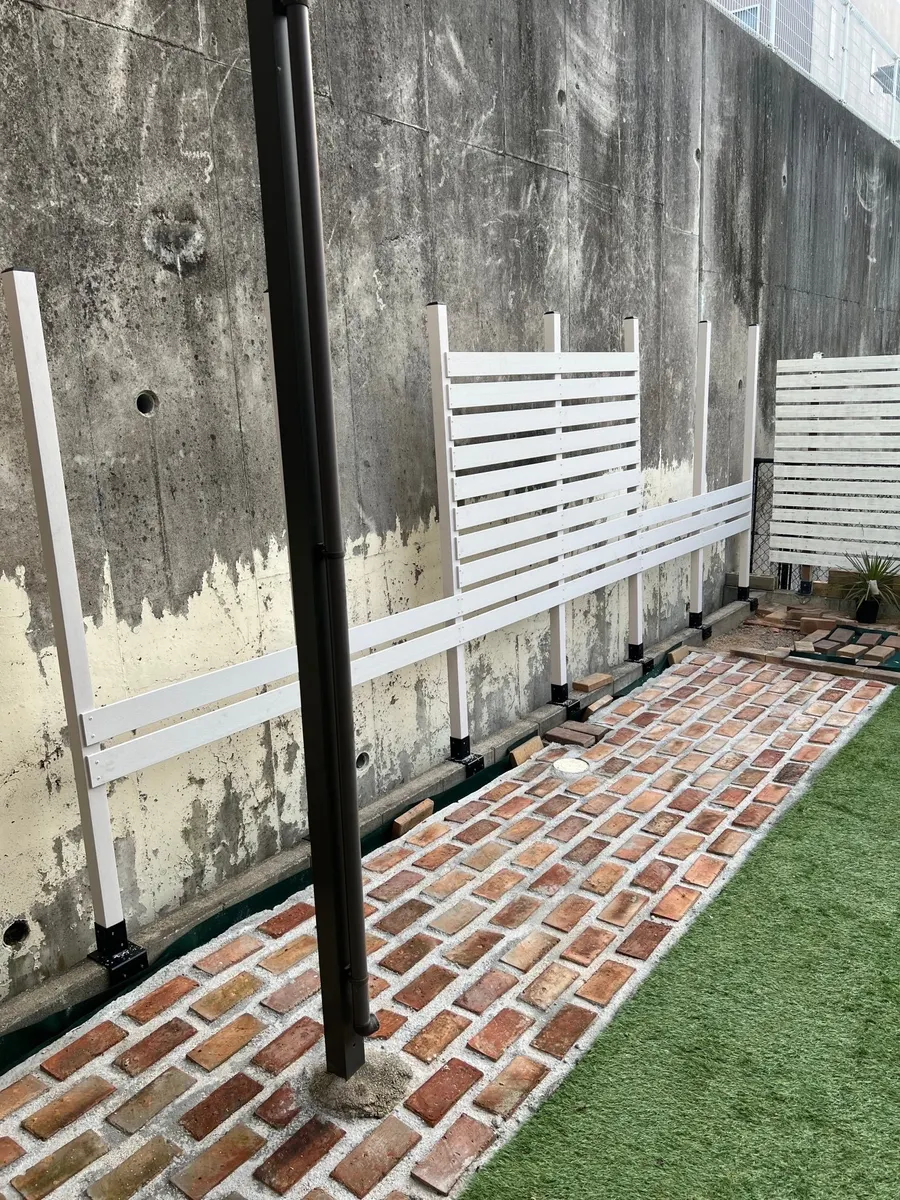 白いフェンスとレンガがとてもおしゃれで素敵になりましたね。