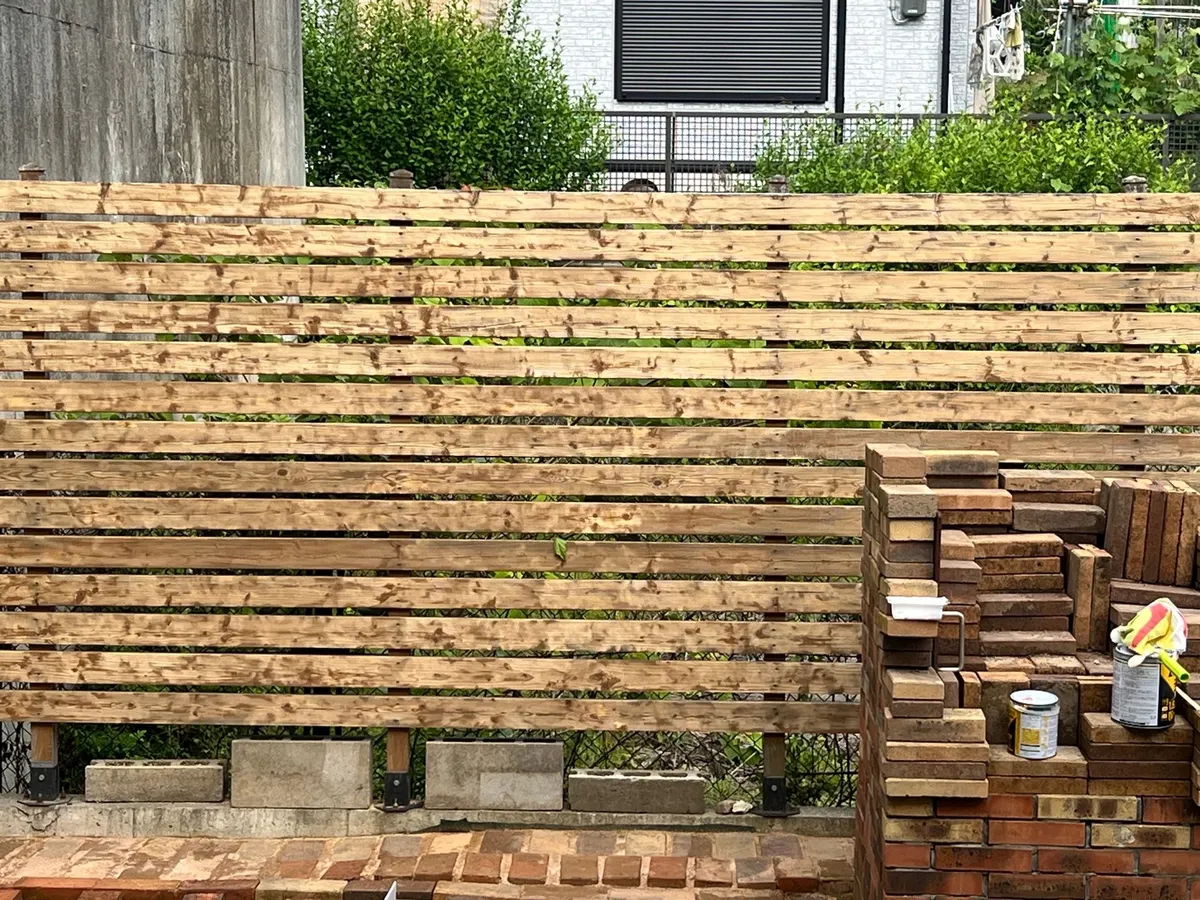 人工のウッドフェンスは楽天市場で在庫なしが続き、購入出来たのはめちゃくちゃクソ暑い8月でした。2日に分けて設置しましたがダンナも私もヘロヘロに😂