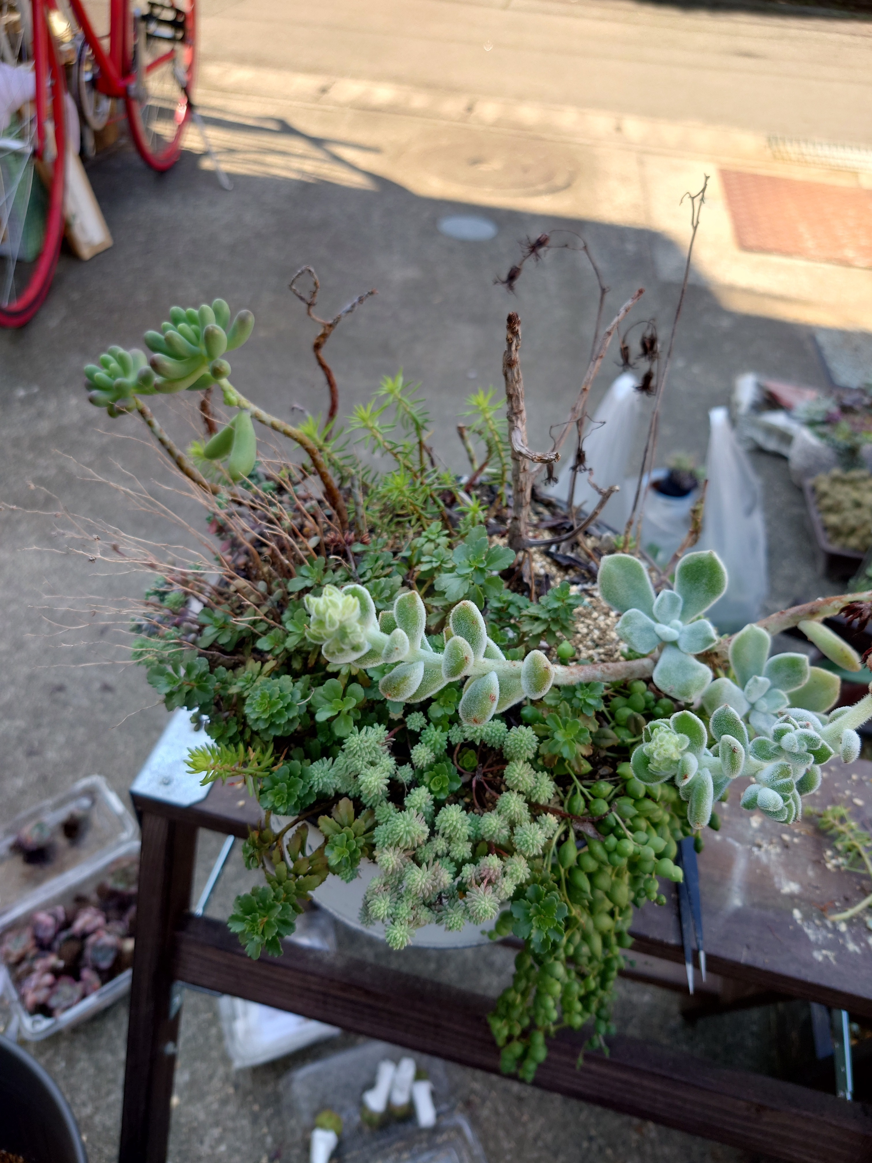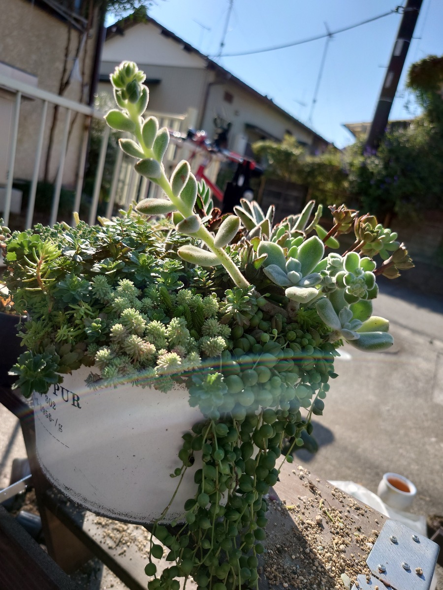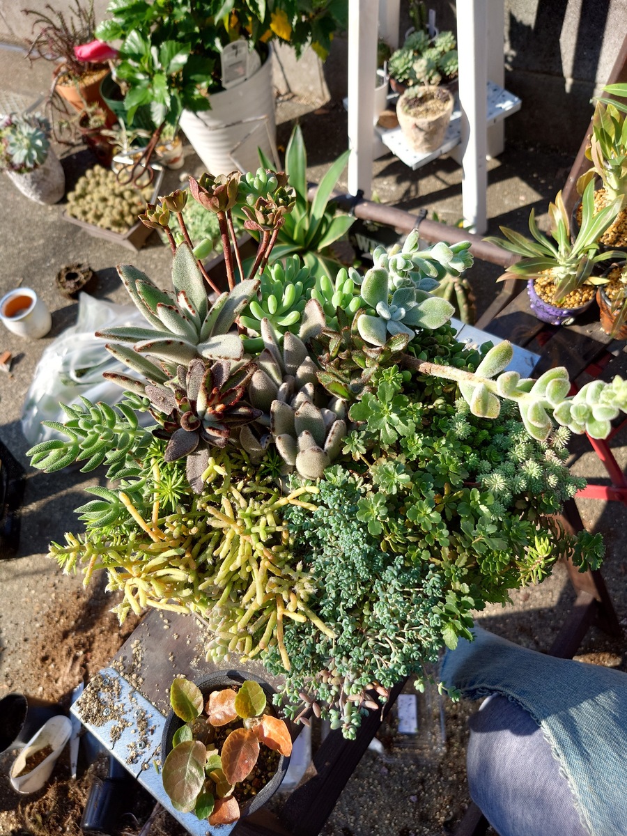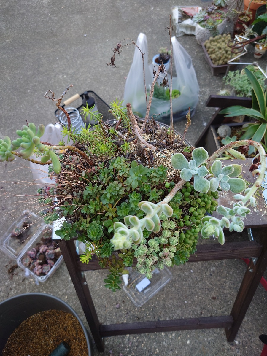 トップ > グリーン > 怠慢寄植え直し YONE 2023/11/01 16:05 怠慢寄植え直し こちらの怠慢寄せ直します。右半分のセダム、グリーンネックレス、フロスティはそのままで。 出来上がりがこちらこちらも怠慢寄せです✨ この間購入した月兎耳をメインにモリモリと入れて行きました。 全部で15ポット入ってます。手前の元々パープルヘイズが入っていたけど今巡り会えなくて、ブレビフォリウムを入れました。 ホントはパーポォーさん入れたかった🥹🥹 いいね 共有する 共有する X LINE リンクをコピー コメントする 0 件の返信 (新着順)