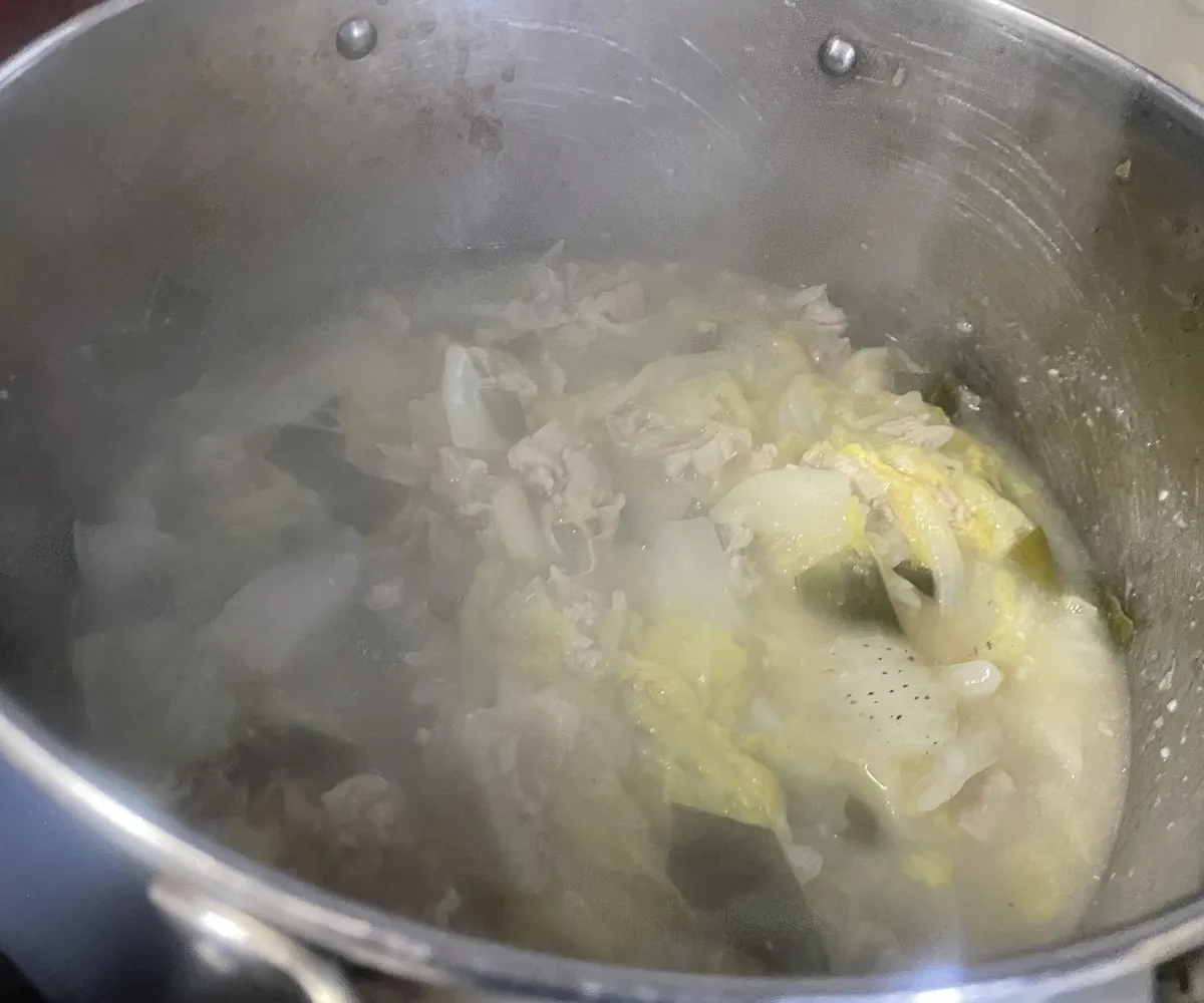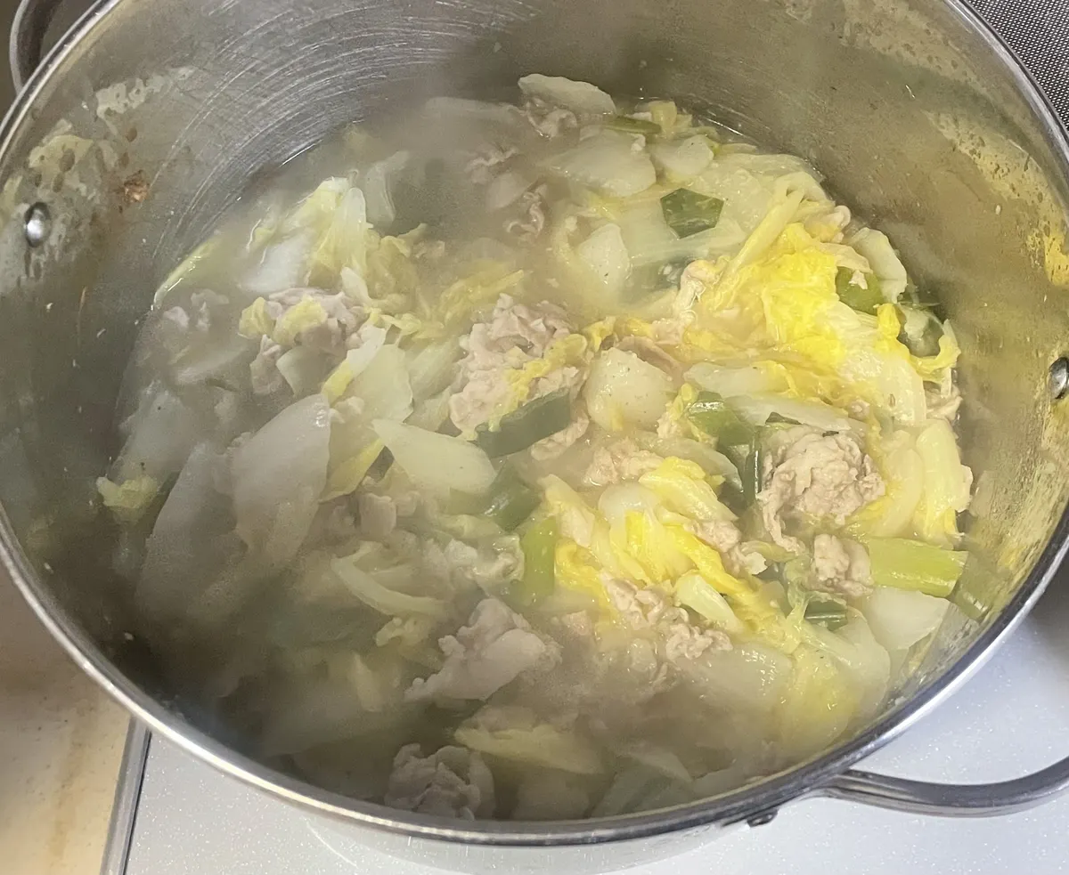 無水で水分ガンガン出てくる白菜で栄養分たっぷりだねー👏