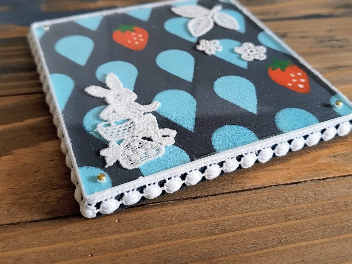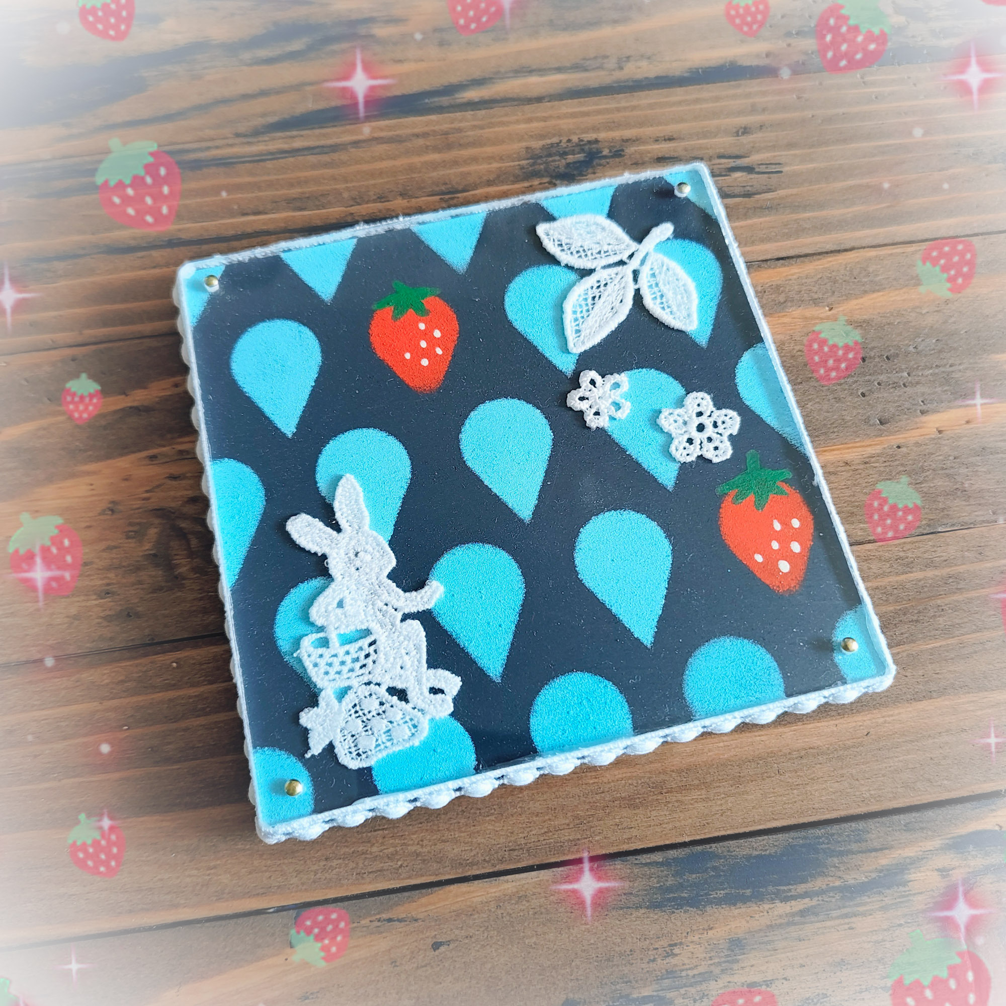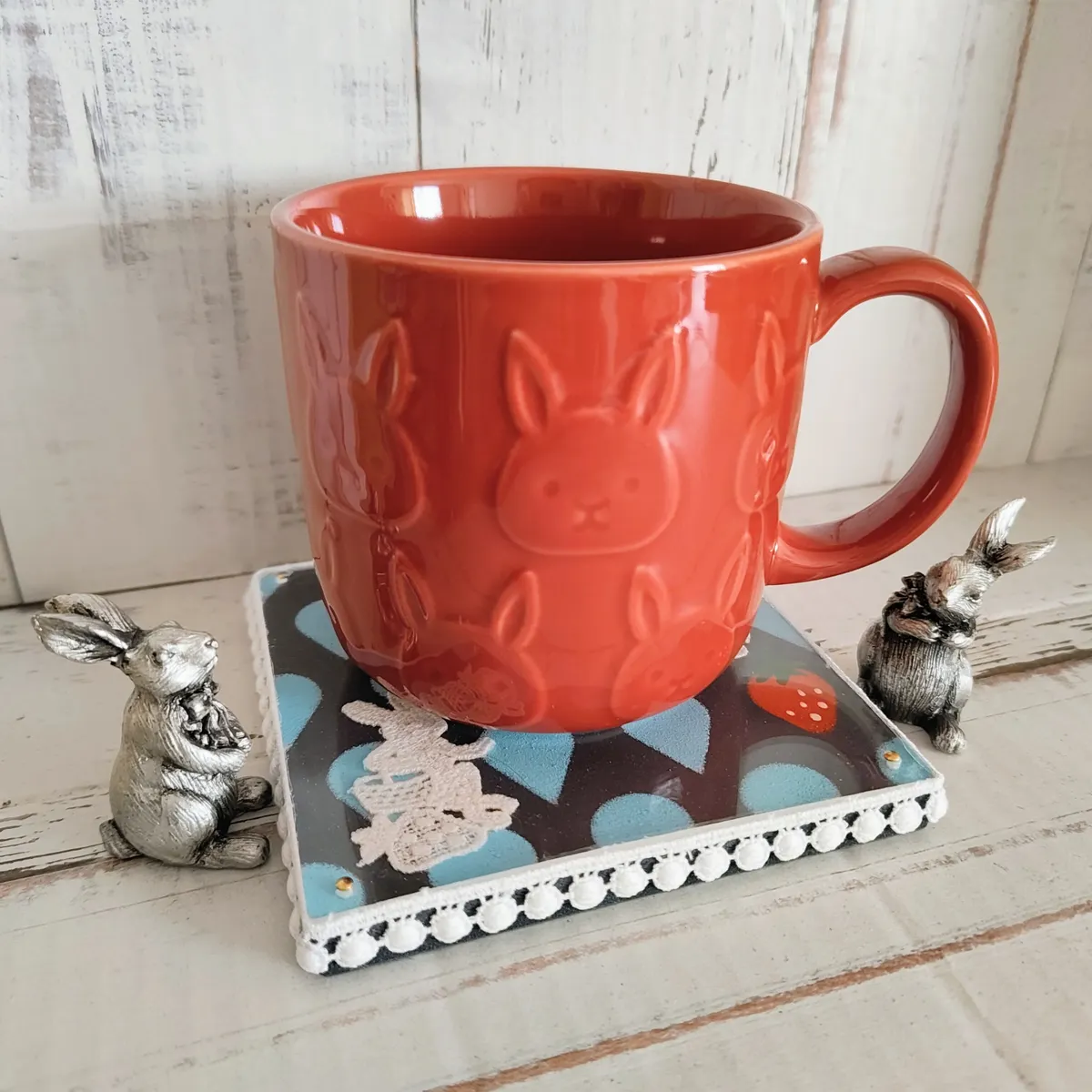 うさぎさんのレースがあるんですね。苺🍓と可愛いウサギさんとの相性もバッチリですね。めちゃくちゃおしゃれなコースターですね。ヾ(๑╹◡╹)ノ"