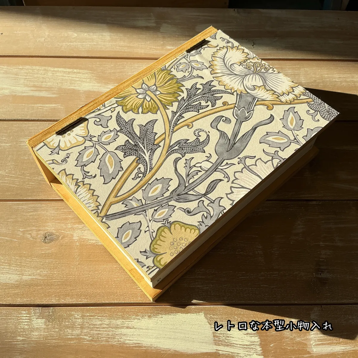 レトロなデザインシートを貼って作成する本型の小物入れです。