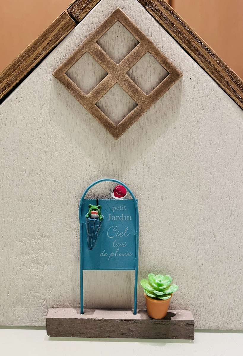 予約した後に行ったマルシェのミニチュアのお店で見つけた看板。