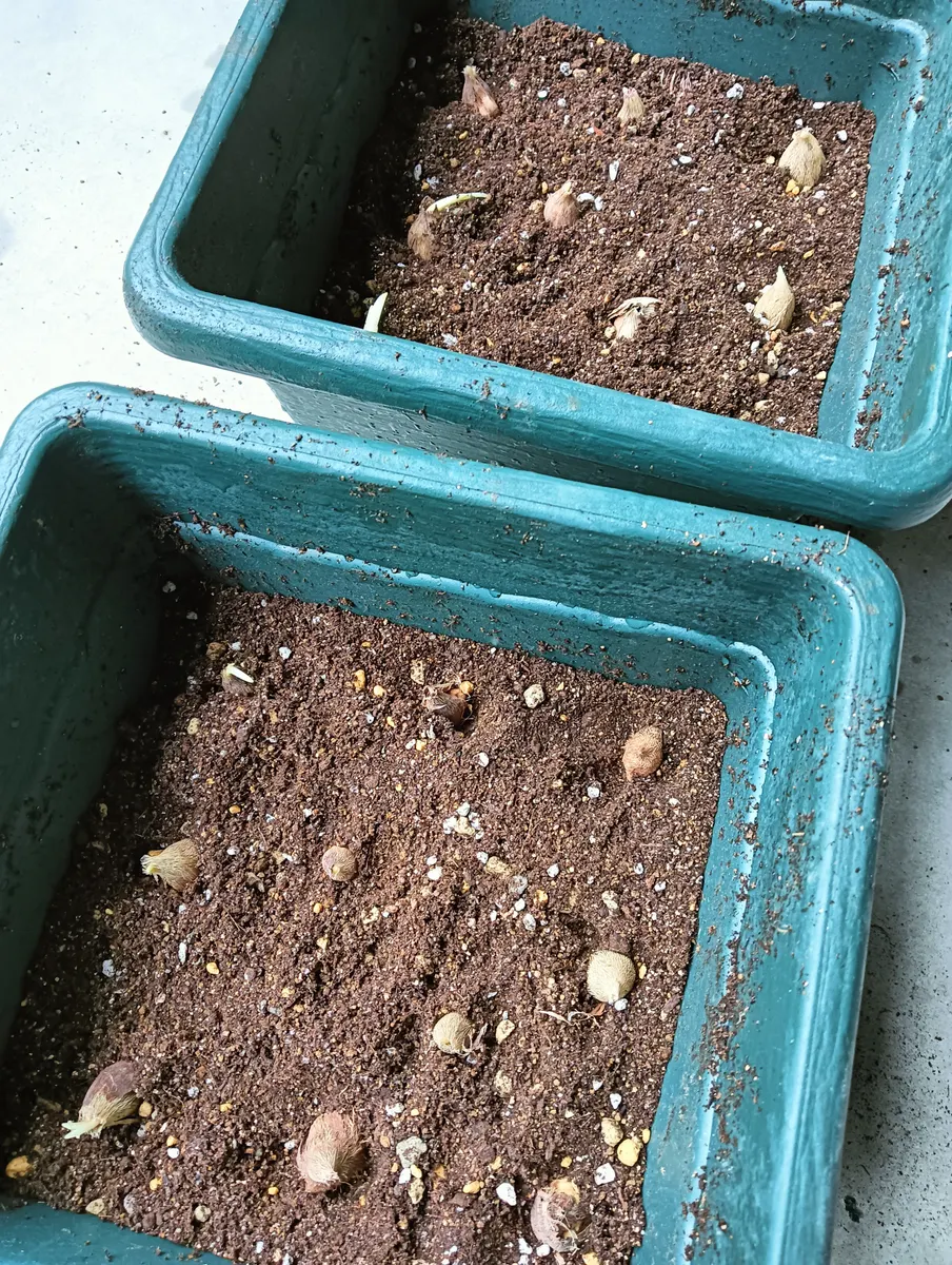 トップ > グリーン > ガーデニング > フリージアが箱の中で芽を出し始めました。 まっさん 2025/11/09 10:55 フリージアが箱の中で芽を出し始めました。 かずん milimili 冷蔵チューリップ🌷と同じ日に植えようと居室に置いてたフリージアの芽が出てました。赤い網で傷つきそうだったので早速植える事にしました。 DAISOのスクエア鉢に水抜き穴を多めに開け、10球ずつ植えました。水やり後、追加で雨に打たせてます。 いいね 共有する 共有する X LINE リンクをコピー コメントする 0 件の返信 (新着順)
