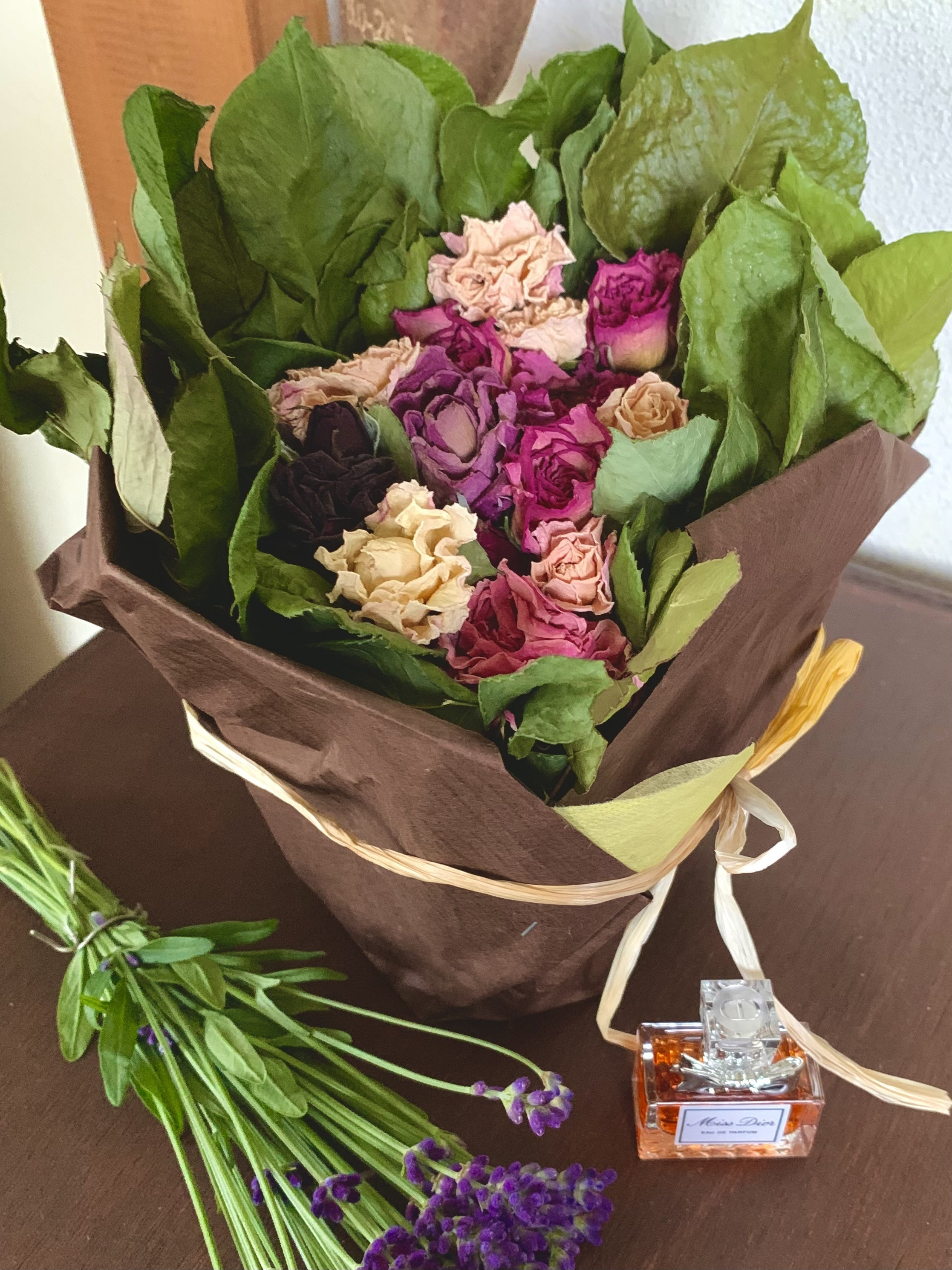 投稿を表示薔薇がこんなに綺麗に色が残ってドライになるのですね🌹ペーパーでおめかしして素敵です💓