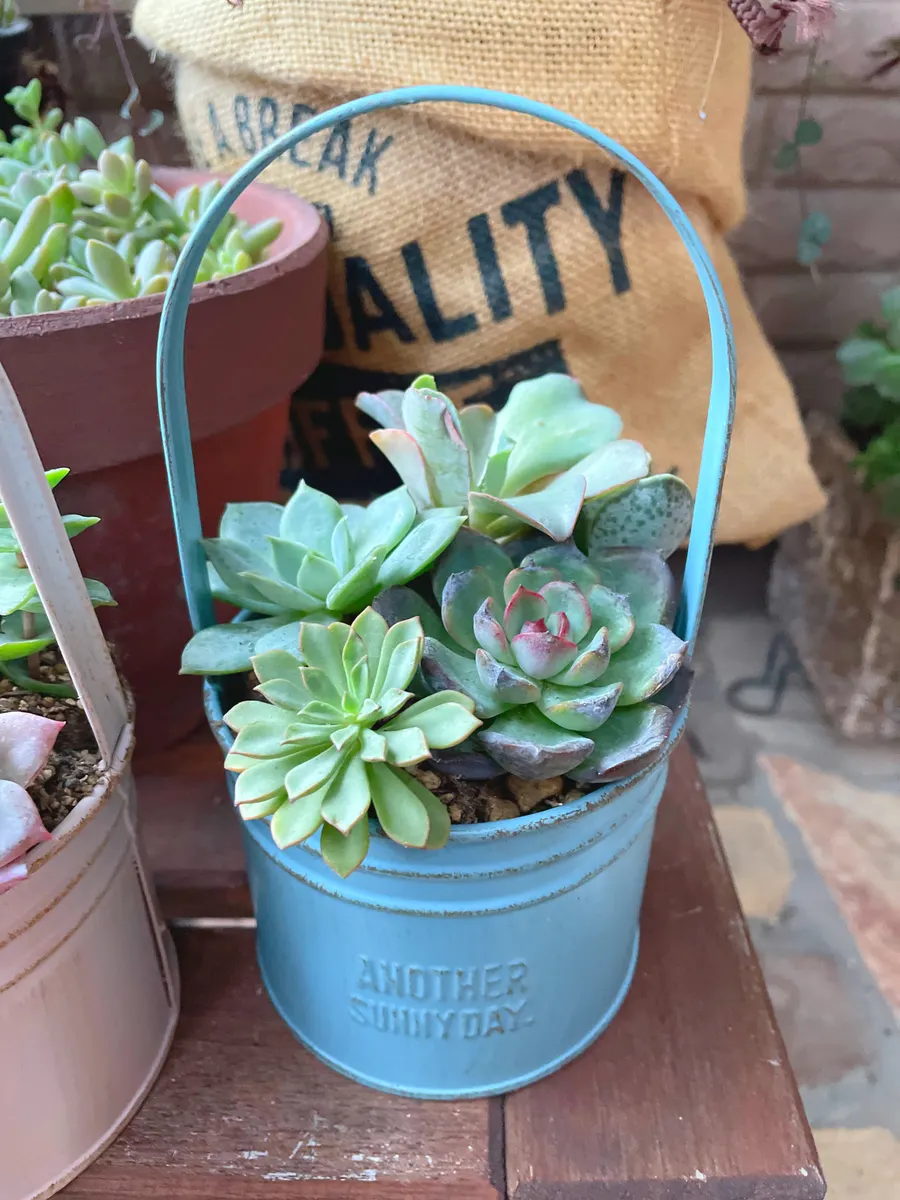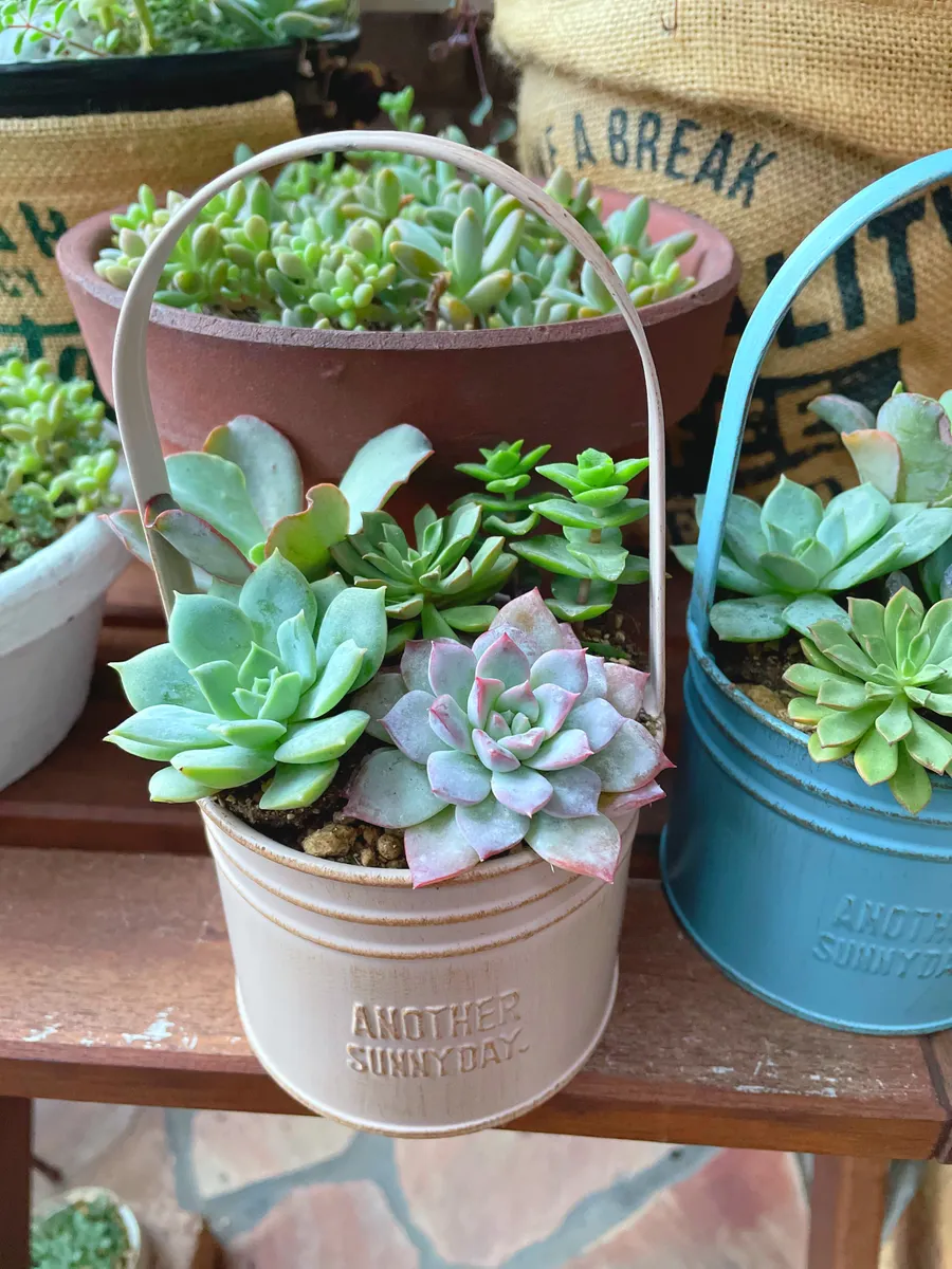 投稿を表示ブリキ鉢いいな〜😍店舗にもよるのかな?うっすらピンクに色付いた多肉さんもかわいいですね😍