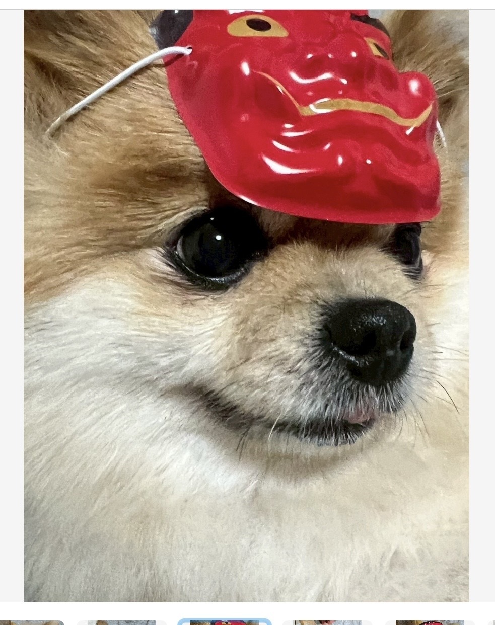 投稿を表示ポメちゃん 耳に掛けてお面を嫌がらないんですね🎭