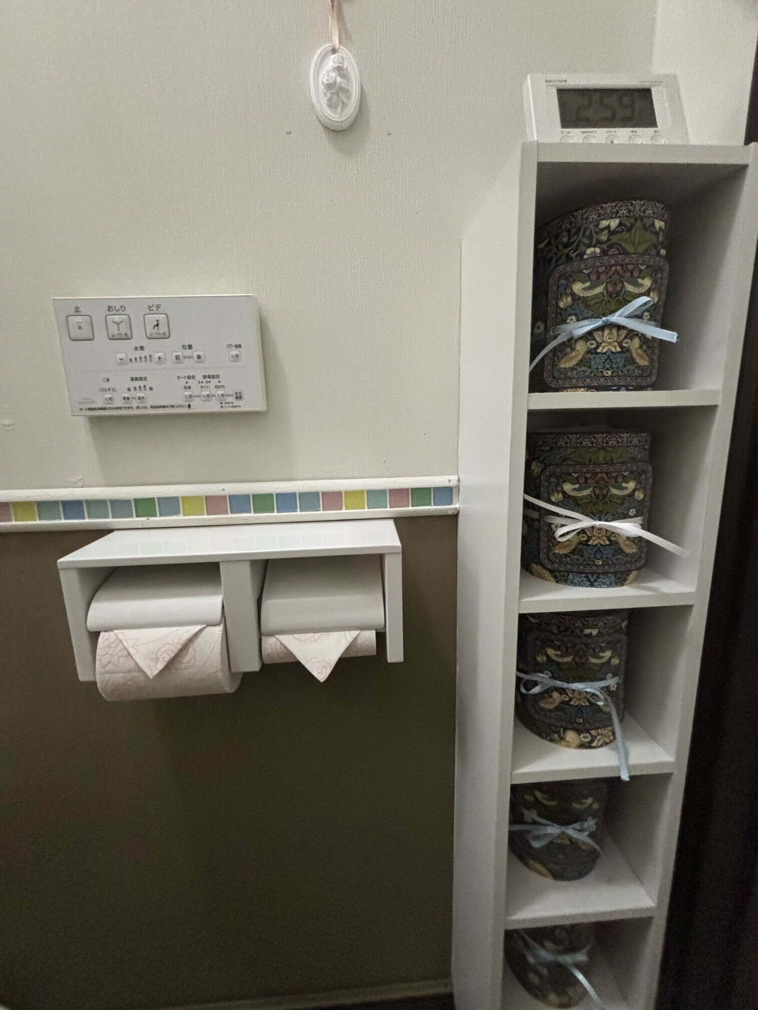 トップ > DIY > インテリア > トイレットペーパーを見せる収納 momo-nyan 2024/04/17 15:05 トイレットペーパーを見せる収納 トイレットペーパー🧻にモリスをデコってみたよ。 使ったのはモリス柄のランチョンマット。 半分に切って、リボンで結んだだけʚ🎀ɞ 同柄のコースターにリボンを通すとストッパーになります。 作る時はクリップ📎で止めて。 出来上がったらクリップ📎は外してOKです‼️ いいね 共有する 共有する X LINE リンクをコピー コメントする 2 件の返信 (新着順) ミュートしたユーザーの投稿です。 投稿を表示 CHIE☆ 2024/04/17 21:03 紙で包んだのかなと思ったらランチョンマットでしたか🥰 ナイスです⭐️ メチャ素敵✨✨✨ いいね 返信する ミュートしたユーザーの投稿です。 投稿を表示 momo-nyan 2024/04/17 21:08 CHIE☆ CHIEさん✨️ ありがとうございます😊 ちょっと固めなんですが、それがまたピッタリ来るんです♥️ いいね 返信する ミュートしたユーザーの投稿です。 投稿を表示 Tagさん 2024/04/17 18:05 ナント❗❗トイレットペーパーがお洒落に変身❗❗この発想はなかったわぁ♥♥♥ステキ❗ いいね 返信する ミュートしたユーザーの投稿です。 投稿を表示 momo-nyan 2024/04/17 18:23 Tagさん ありがとう❣️ すぐ出来ちゃうわ🤣 いいね 返信する