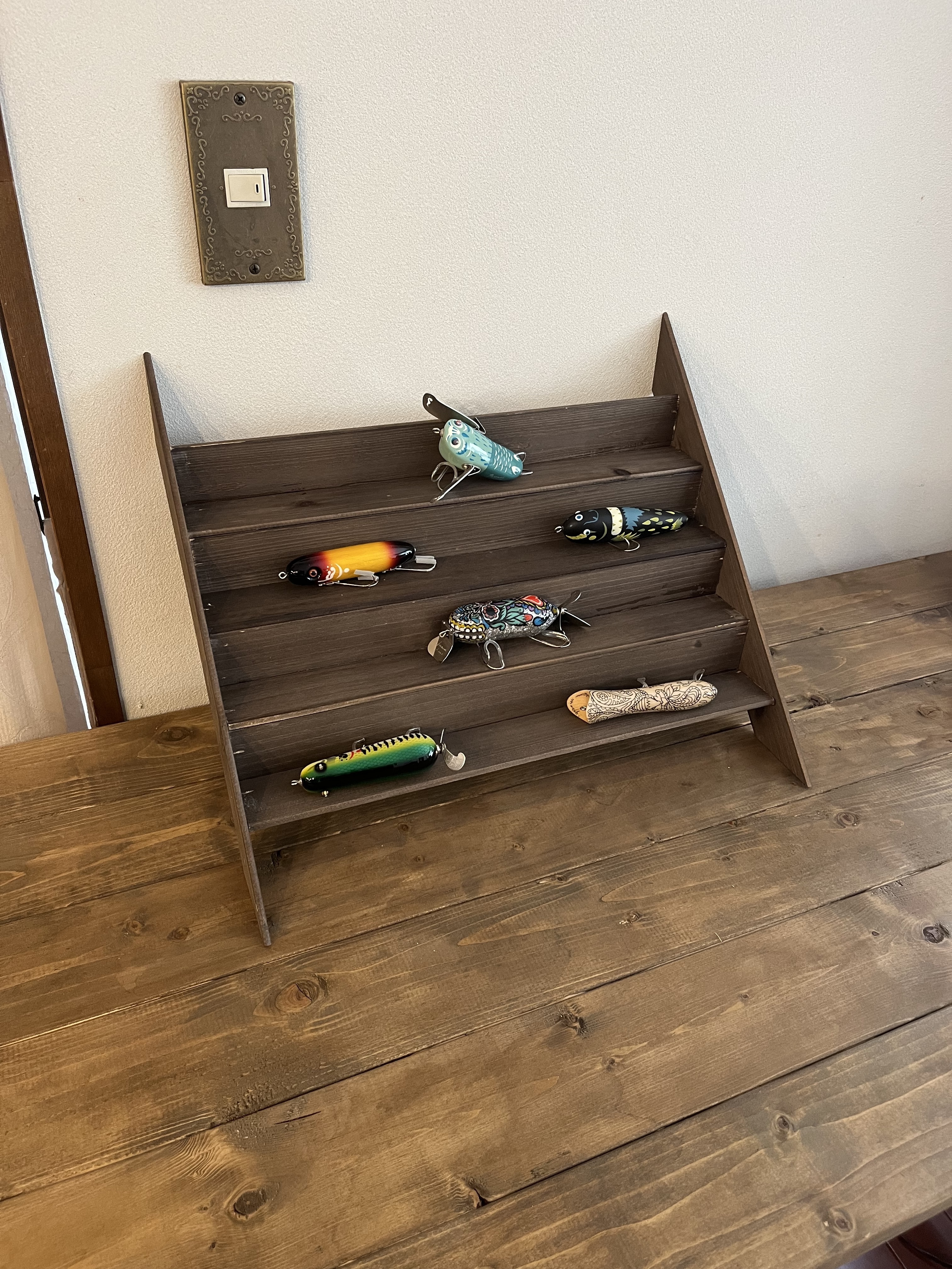 木工用ボンドで、ルアーの飾れる飾り棚が作れてしまうとは✨