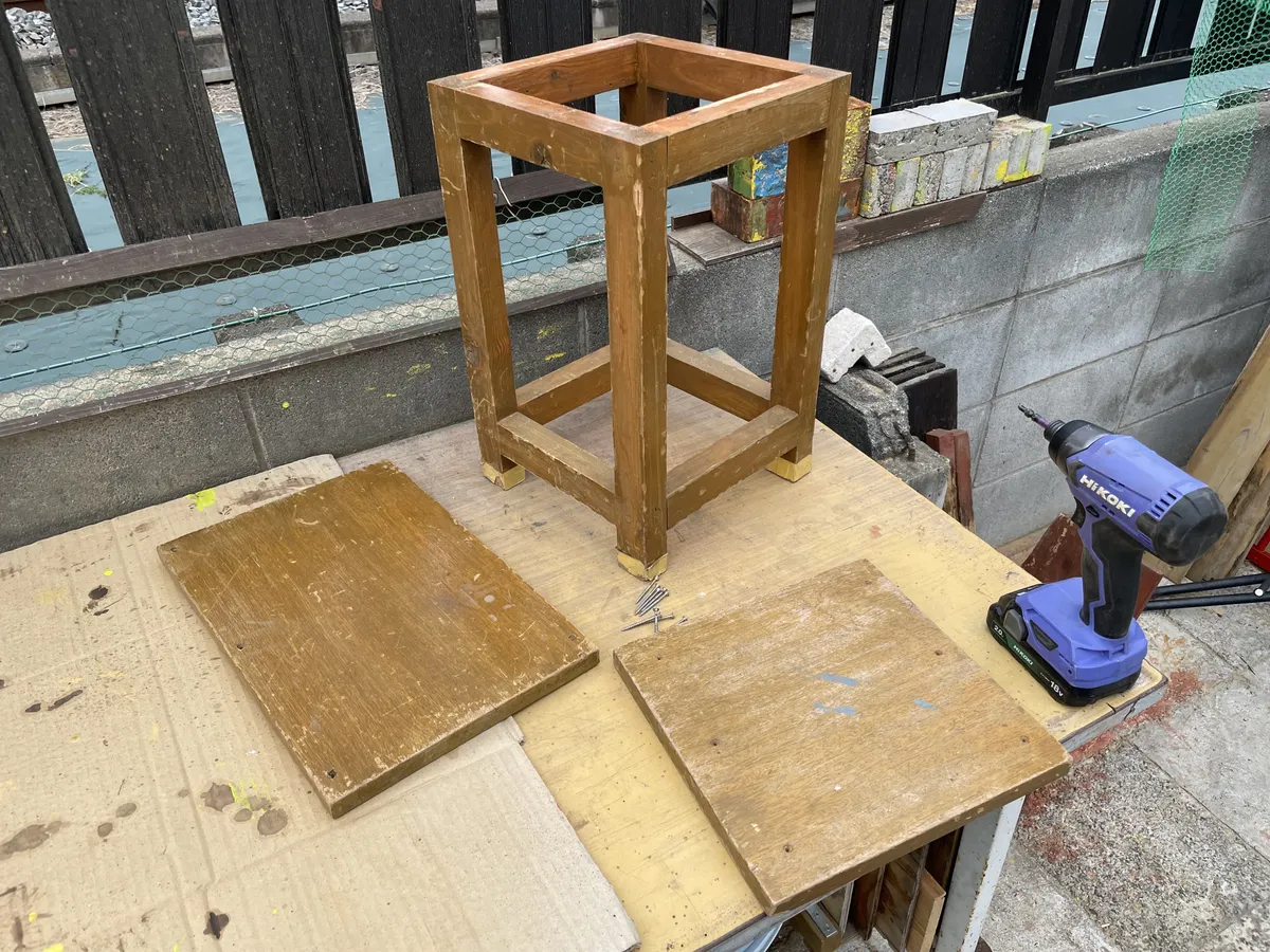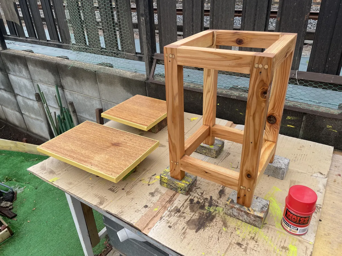 2022年3月に作った図工イス、塗装メンテは今回が初めてでした。