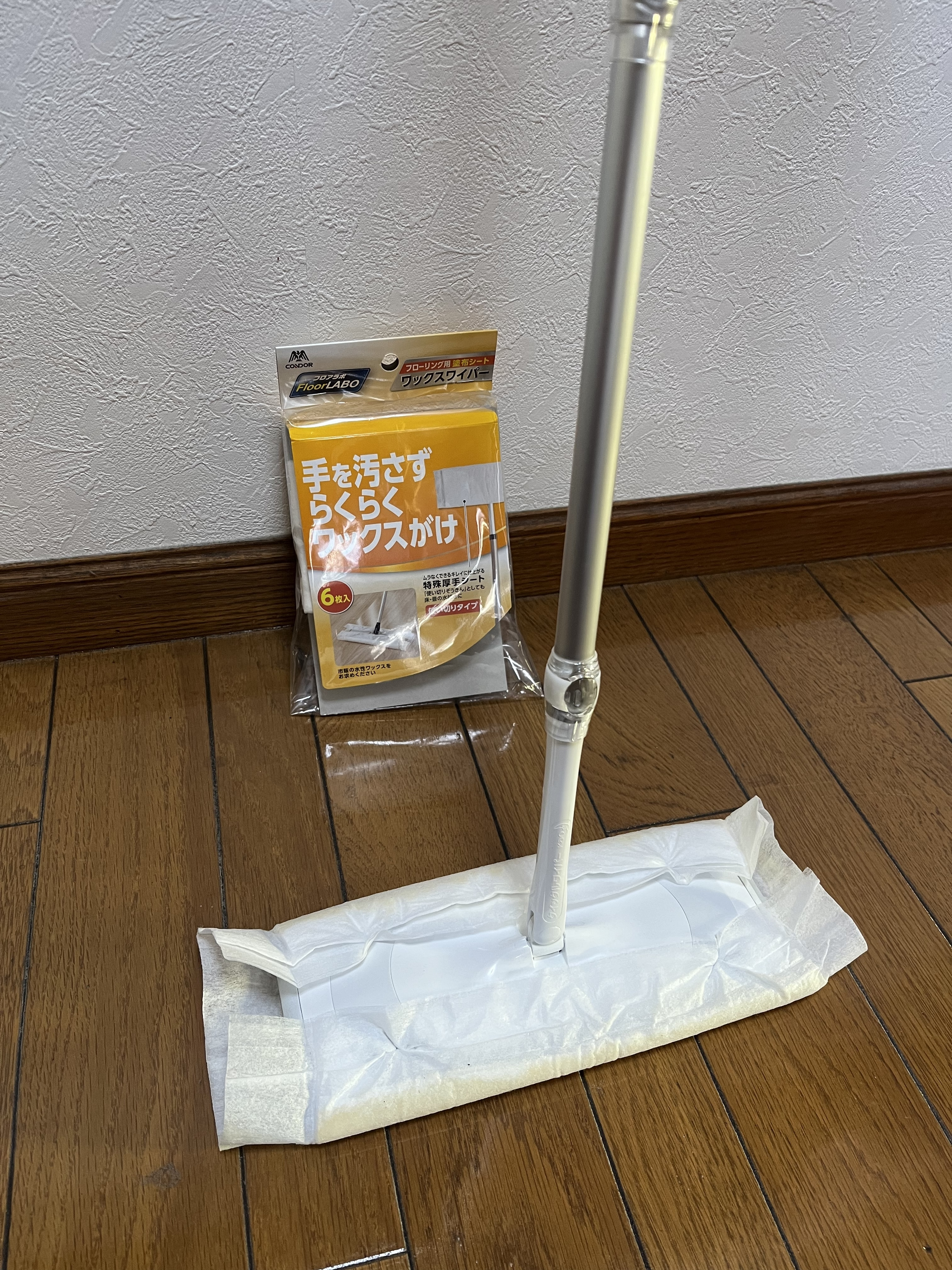 ワックス掛けをする時の必需品は、クイックルワイパーとカインズさんに売っている使い捨てのシート。