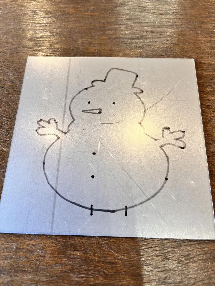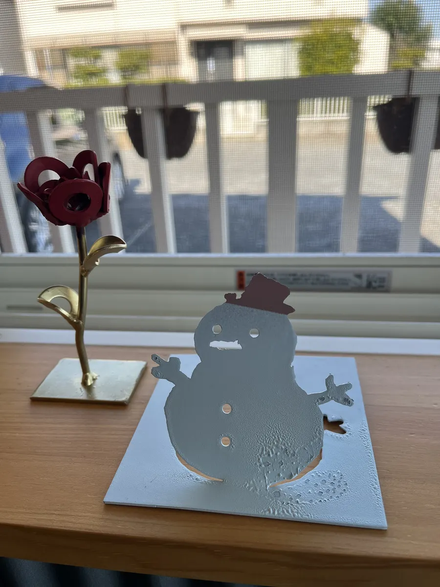 金属をプラズマ切断して雪だるまの飾りを作りました