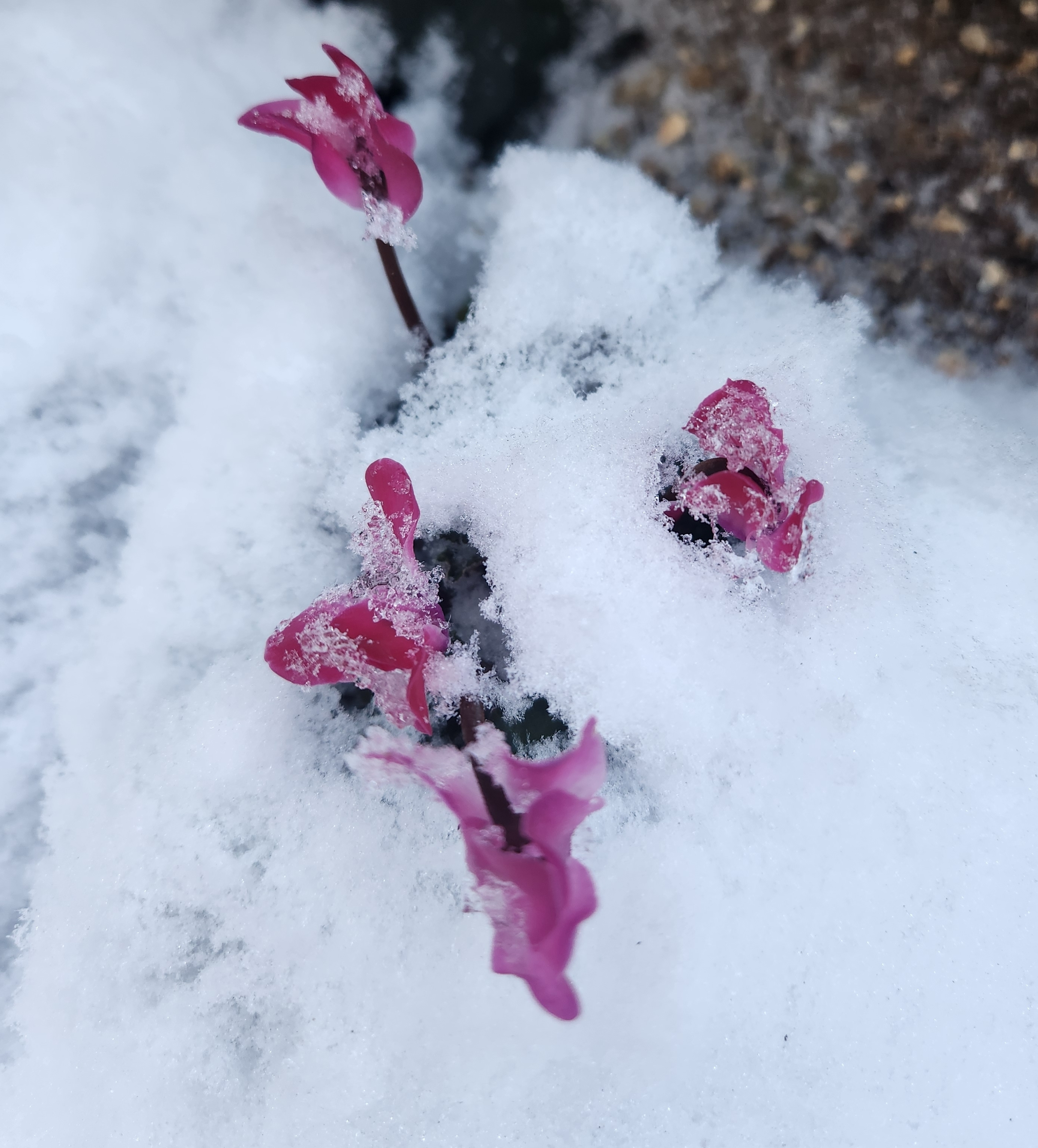 投稿を表示ガーデンシクラメンとはいえ、雪と、今朝の冷え込みは、きつかったですね〜暖かな日差しで、ホッとできます様に🥰
