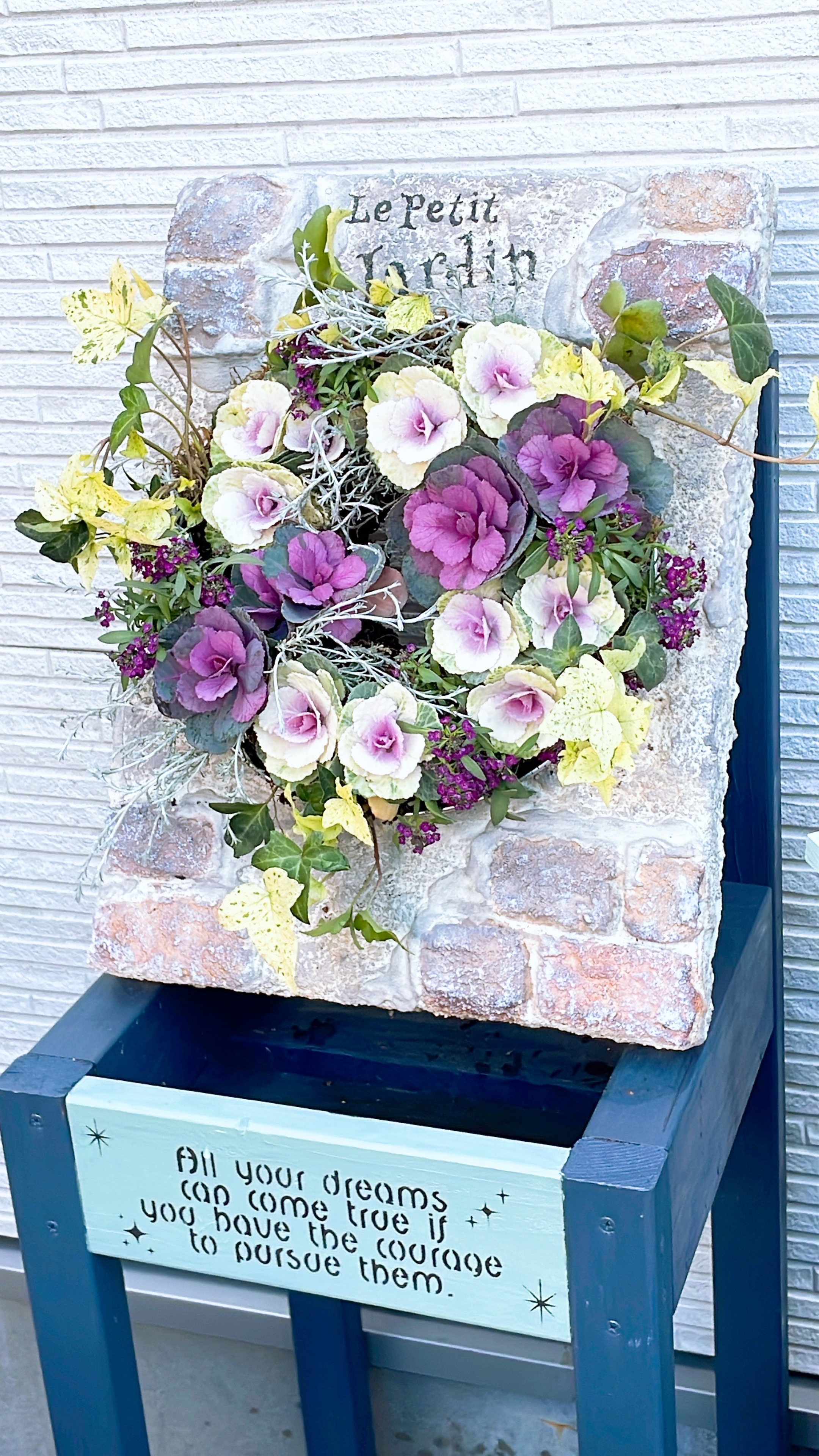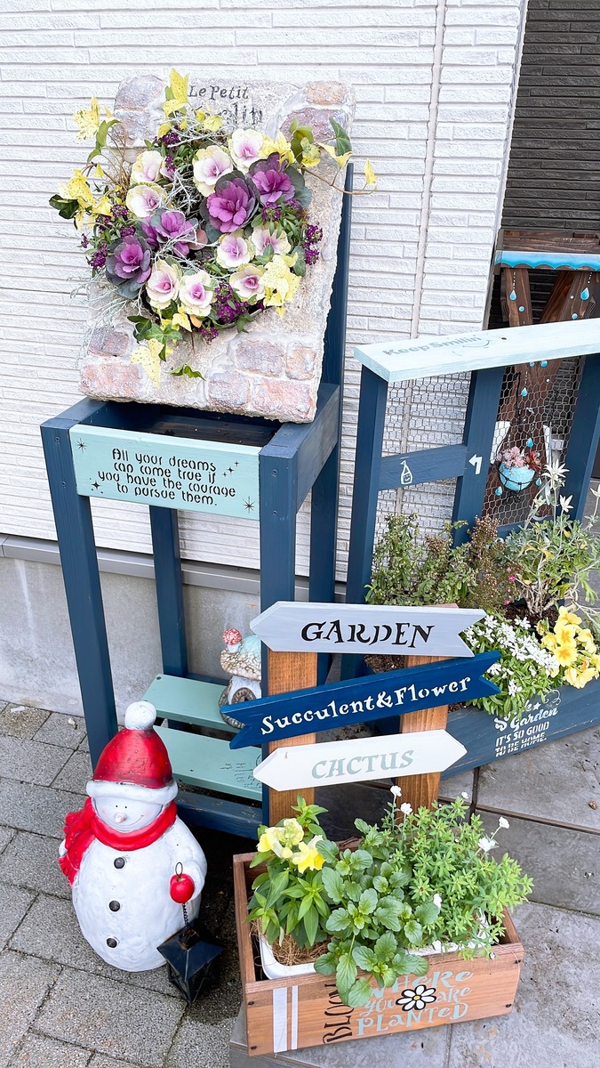 投稿を表示葉牡丹のリースも、モルタルの土台も、WSの作品もステンシルも