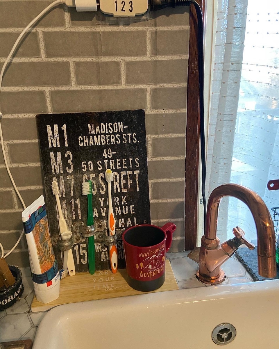 トップ > DIY > インテリア > 男前歯ブラシスタンド😀✨とレンガの壁紙のハーモニー かおるん 2022/10/19 20:16 男前歯ブラシスタンド😀✨とレンガの壁紙のハーモニー 前に作っていた歯ブラシスタンド🪥に模様替え❣️雑貨屋さんで買ったサインボードにサドルバンド付けてサビ加工やシャビーな感じにしました。😏レンガ壁紙とマッチしていい感じ〜🎵🎵サボテンも輸入壁紙です! いいね 共有する 共有する X LINE リンクをコピー コメントする 1 件の返信 (新着順) ミュートしたユーザーの投稿です。 投稿を表示 あにー 2022/10/20 06:27 サドルバンドって言うのですね😊 アイデアすごいです! (水道の蛇口がオシャレ~💕) いいね 返信する ミュートしたユーザーの投稿です。 投稿を表示 かおるん 2022/10/20 08:10 ありがとうございます😊蛇口🚰前はアメリカ製のにしてましたが壊れたら修理部品見つけられなくて日本製で外国風なのを探しました〜✨ いいね 返信する