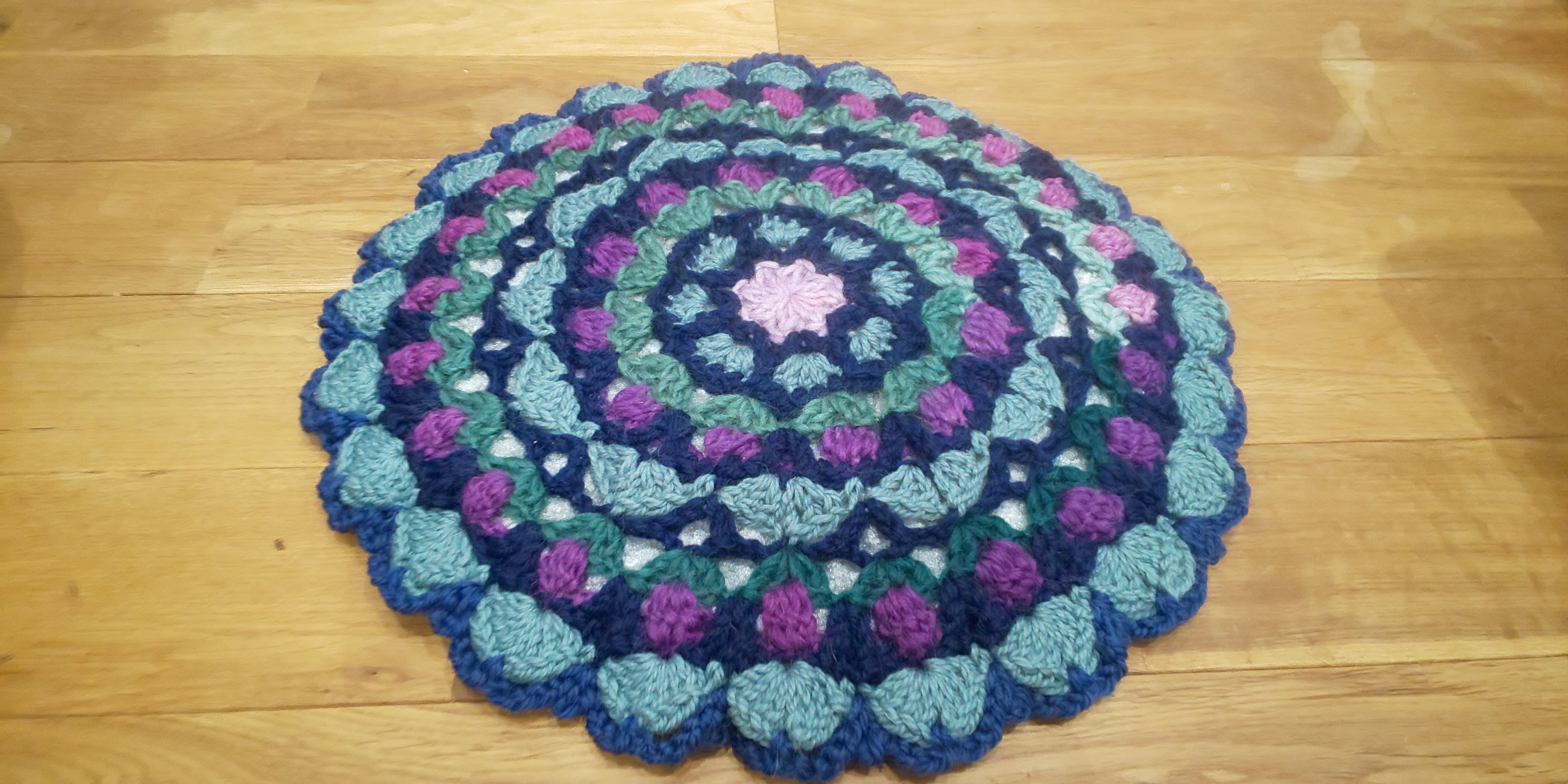 投稿を表示綺麗なお色の手編み座布団🧶🎶