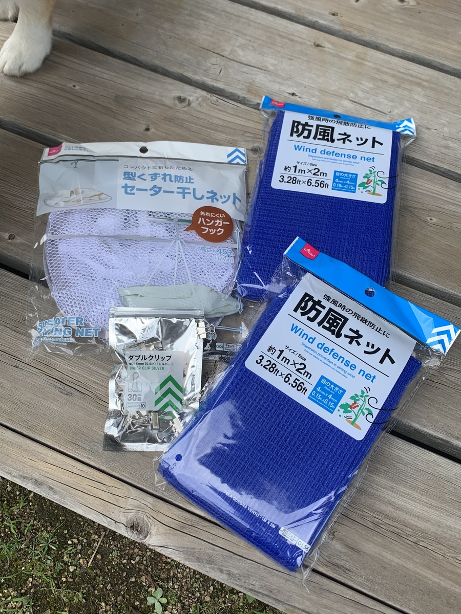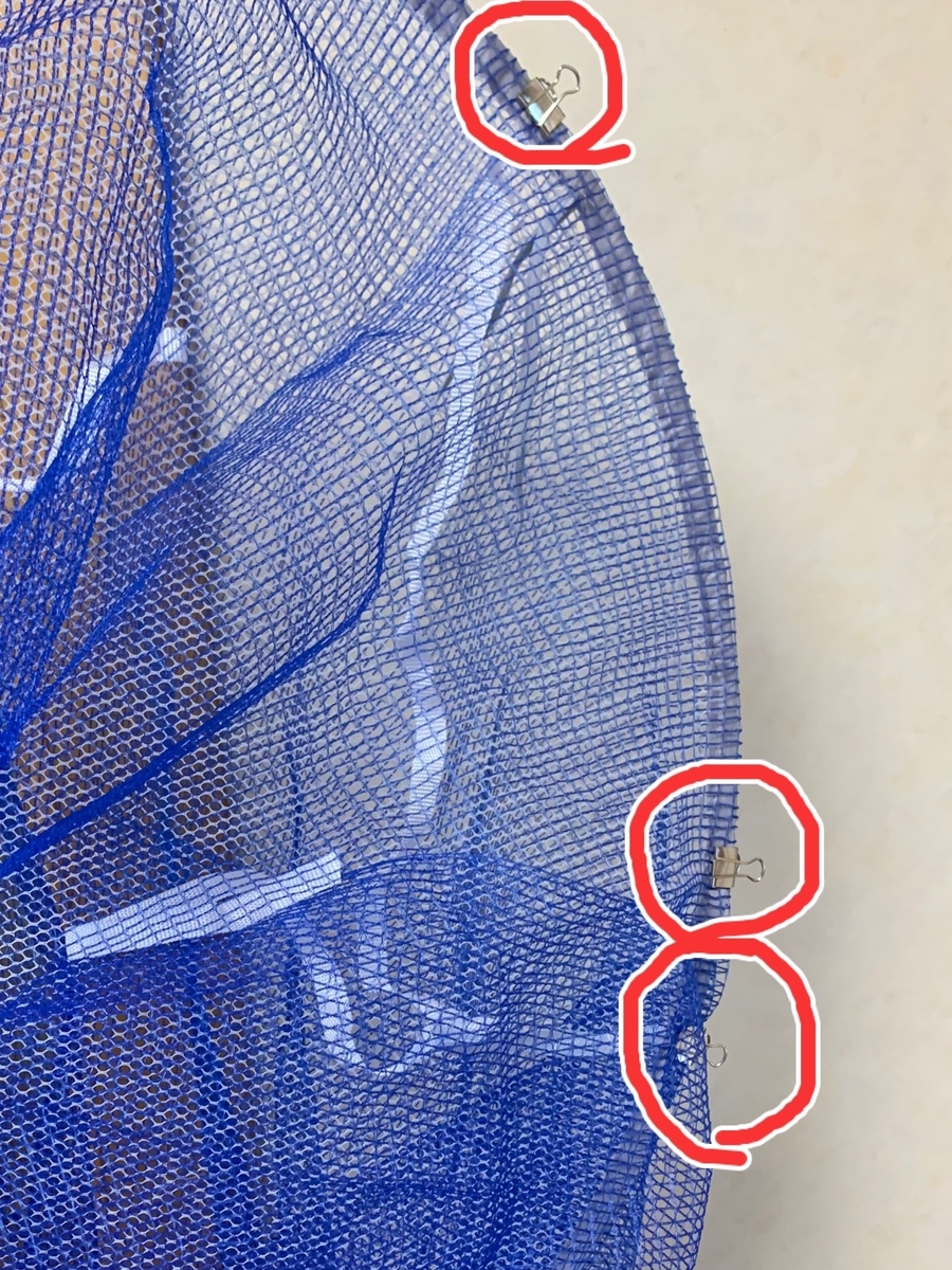 これをセーター干し丸ネットにダブルクリップでとめます。